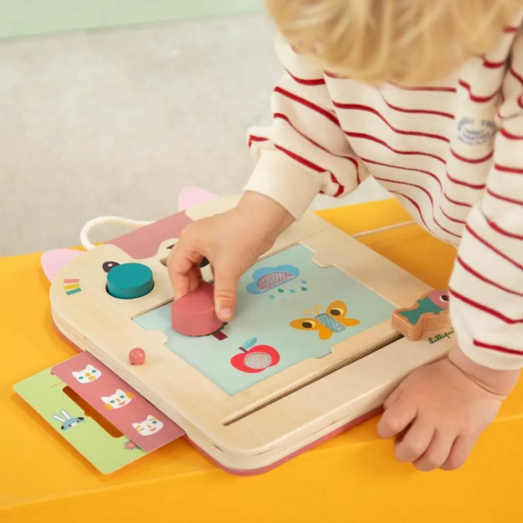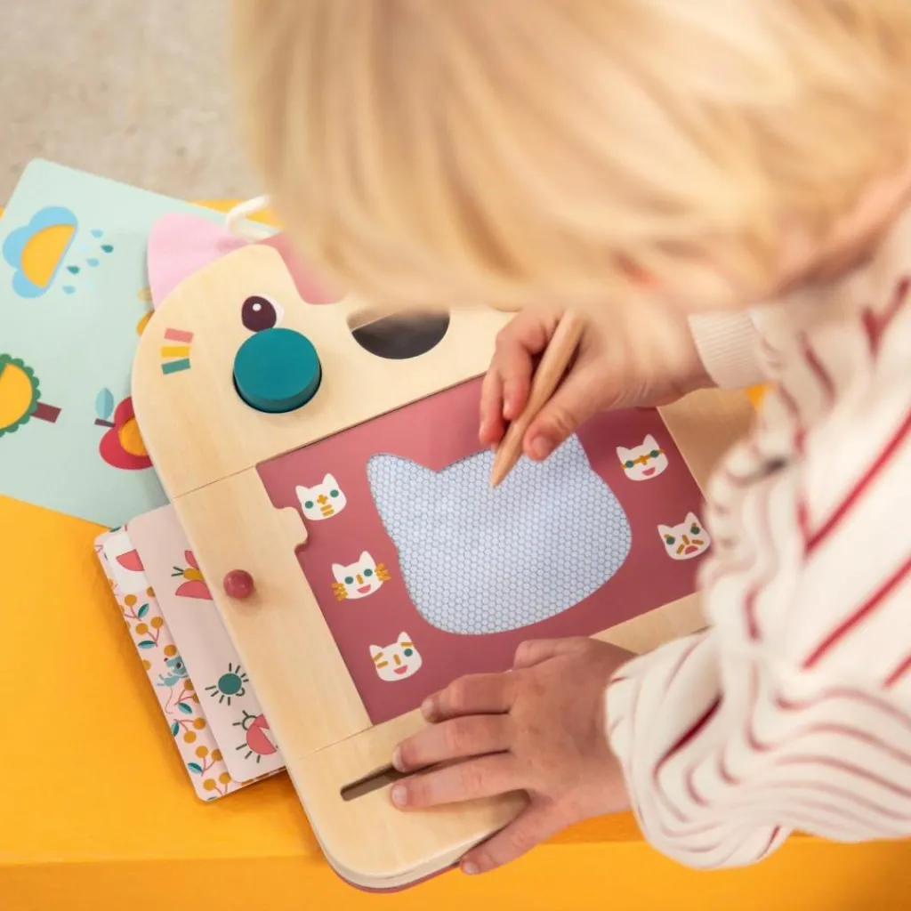 Avec l’ardoise magique Jeanne, chaque dessin devient une aventure amusante et colorée. En forme de chat malicieux, cette jolie ardoise en bois accompagne les enfants dès 18 mois dans leurs premiers pas créatifs. Grâce à son stylet détachable, ses 3 formes magnétiques et ses 6 cartes recto-verso (soit 12 modèles de jeux), l’enfant découvre la joie de tracer, reproduire et inventer des histoires visuelles infinies.