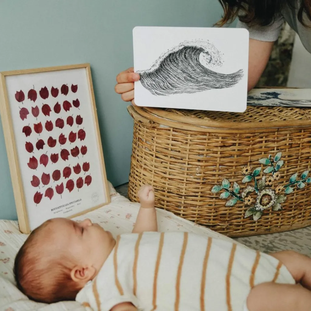 Coffret de 20 cartes, inspirées de tableaux, pour affiner la vision et sensibiliser à l’art. Conçu pour accompagner en douceur le raffinement de la vue et sensibiliser l’enfant à la beauté selon la pédagogie de Maria Montessori, développée avec une directrice d’école Montessori certifiée. Dans le coffret : 20 cartes (noir&blanc, couleur), 2 supports en bois et une notice pédagogique.