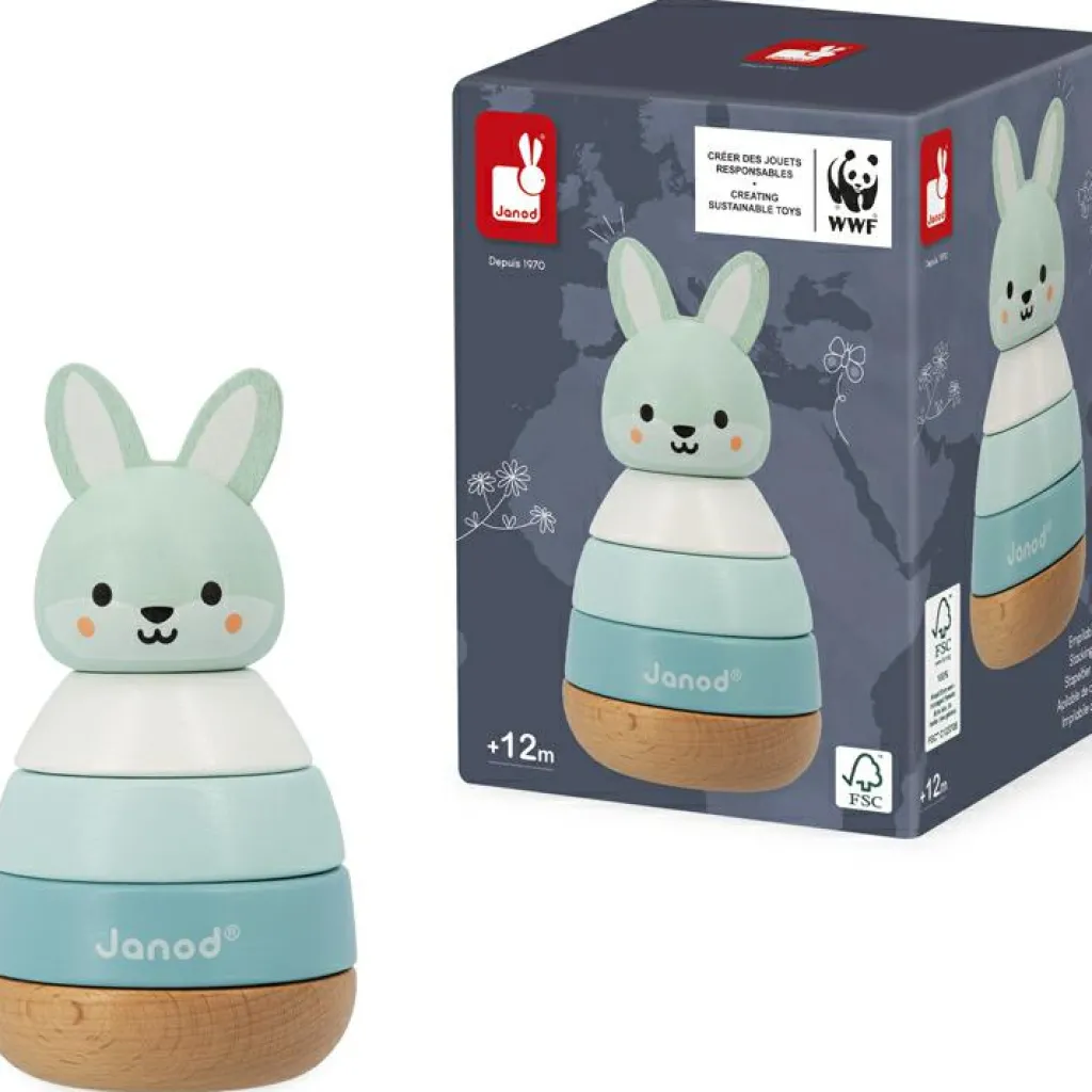 – Comprend 1 lapin et 4 pièces à empiler.