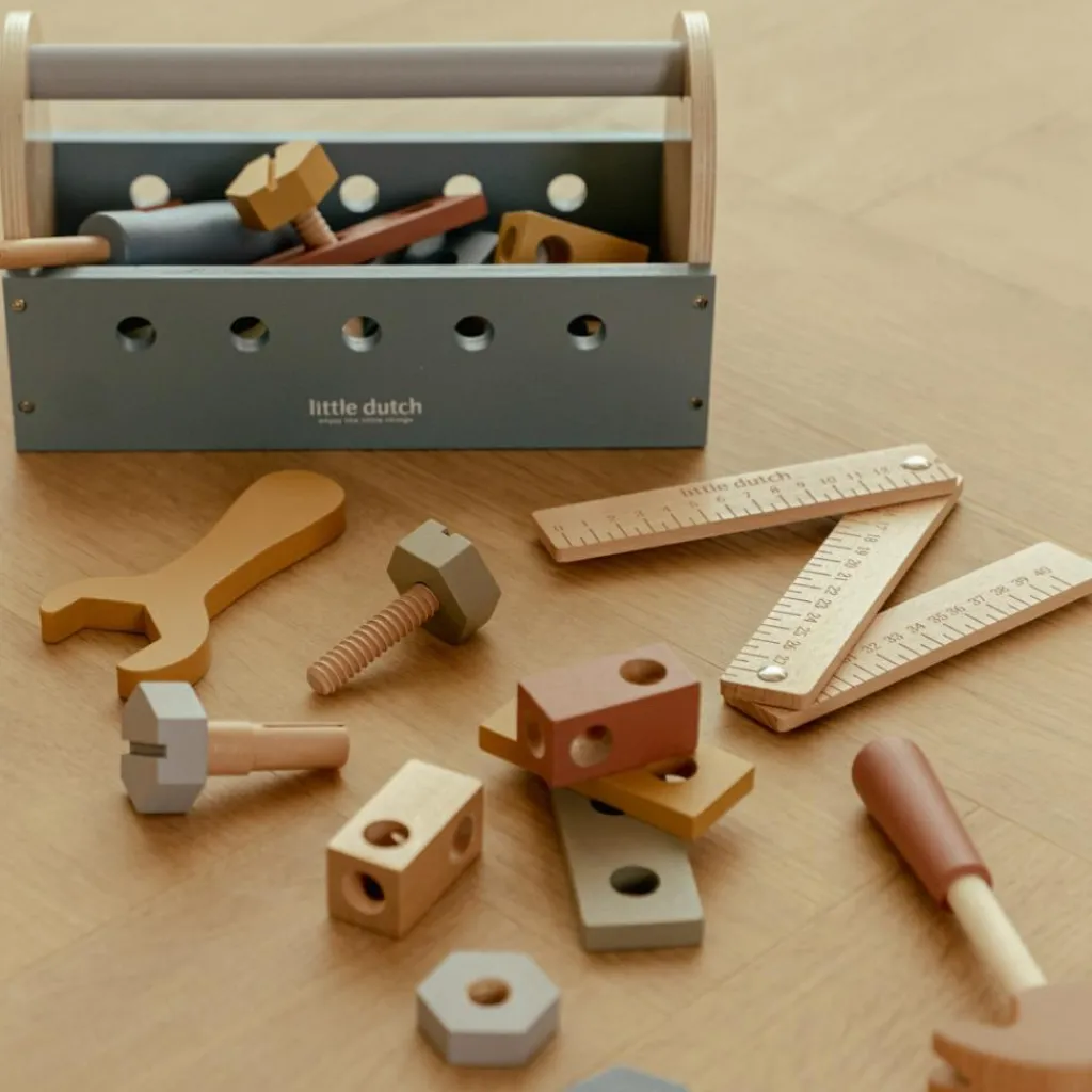 Initiez votre enfant au bricolage avec la Boîte à outils en bois Little Dutch, un jeu éducatif et amusant qui allie imagination et motricité !