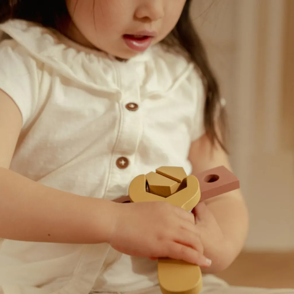 Avec son design élégant et ses couleurs douces, cette boîte à outils contient tout le nécessaire pour imiter les grands : un marteau, un tournevis, une clé, ainsi que des panneaux, boulons et écrous à assembler. Pratique et ingénieuse, elle se transforme également en banc à marteler pour varier les activités. Chaque pièce est pensée pour être facilement manipulée par les petites mains, favorisant ainsi le développement de la coordination et de la créativité.