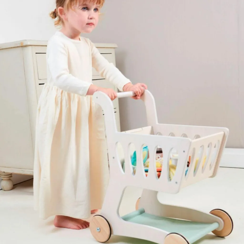 – Faire le tour du magasin avec le chariot de courses en bois le plus élégant.