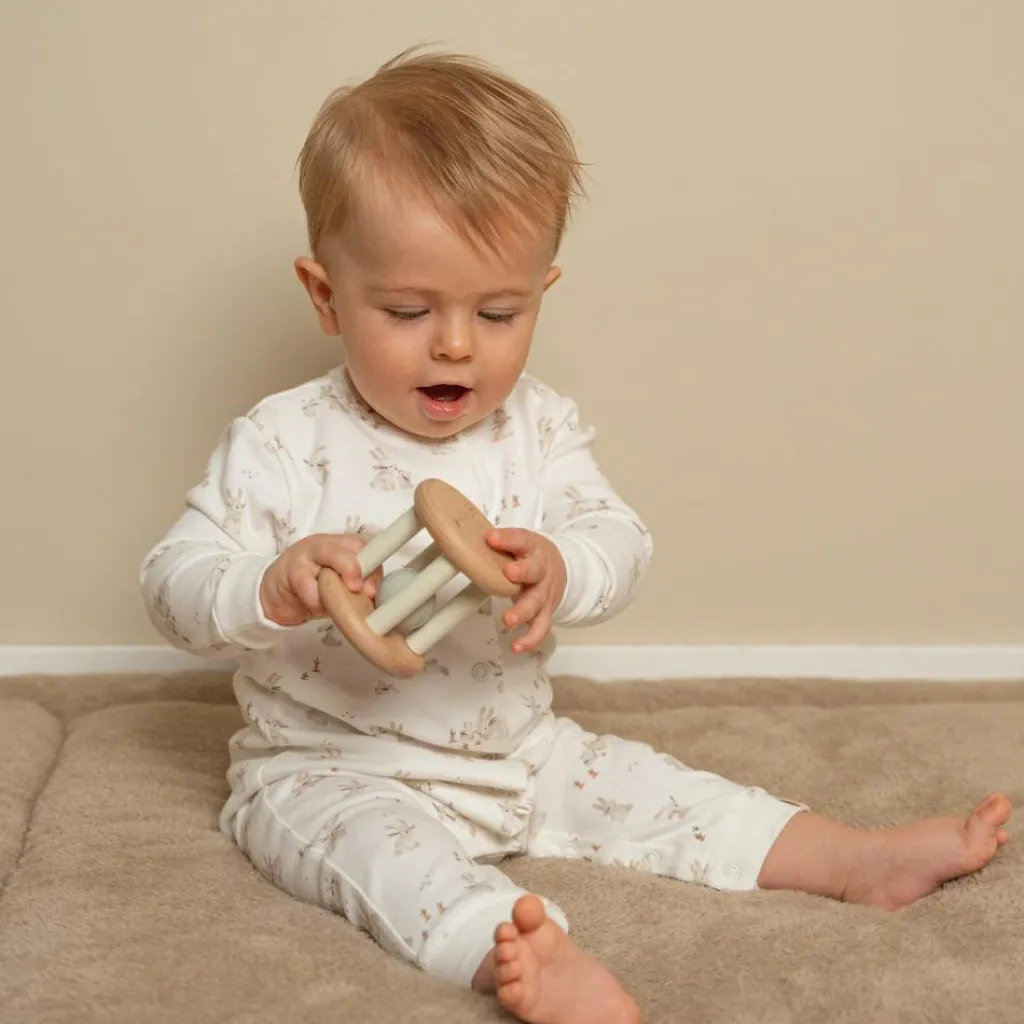 – Ce joli hochet en bois de la collection Baby Bunny roule et roule, faisant un bruit de cliquetis.