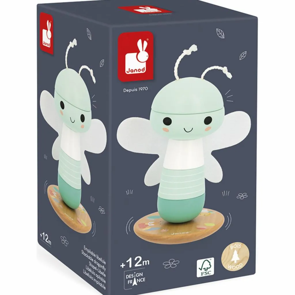 Laissez place à la magie et à la douceur avec le Jeu à empiler Libellule Pure de Janod, un compagnon poétique pour les premières découvertes de bébé.