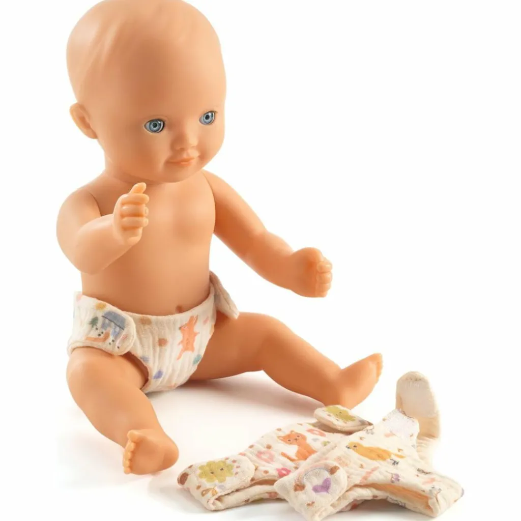 On va changer la couche ! Lot de 3 couches lavables en tissu gaze de coton pour poupons avec fermeture velcro.