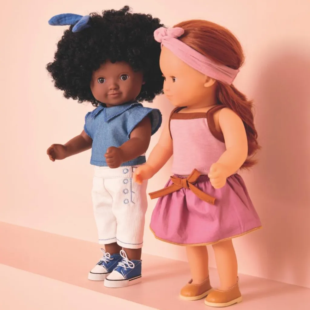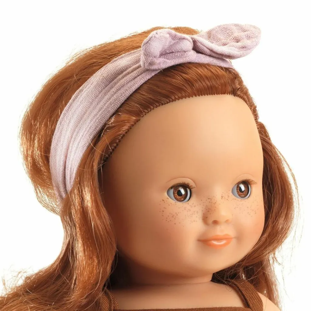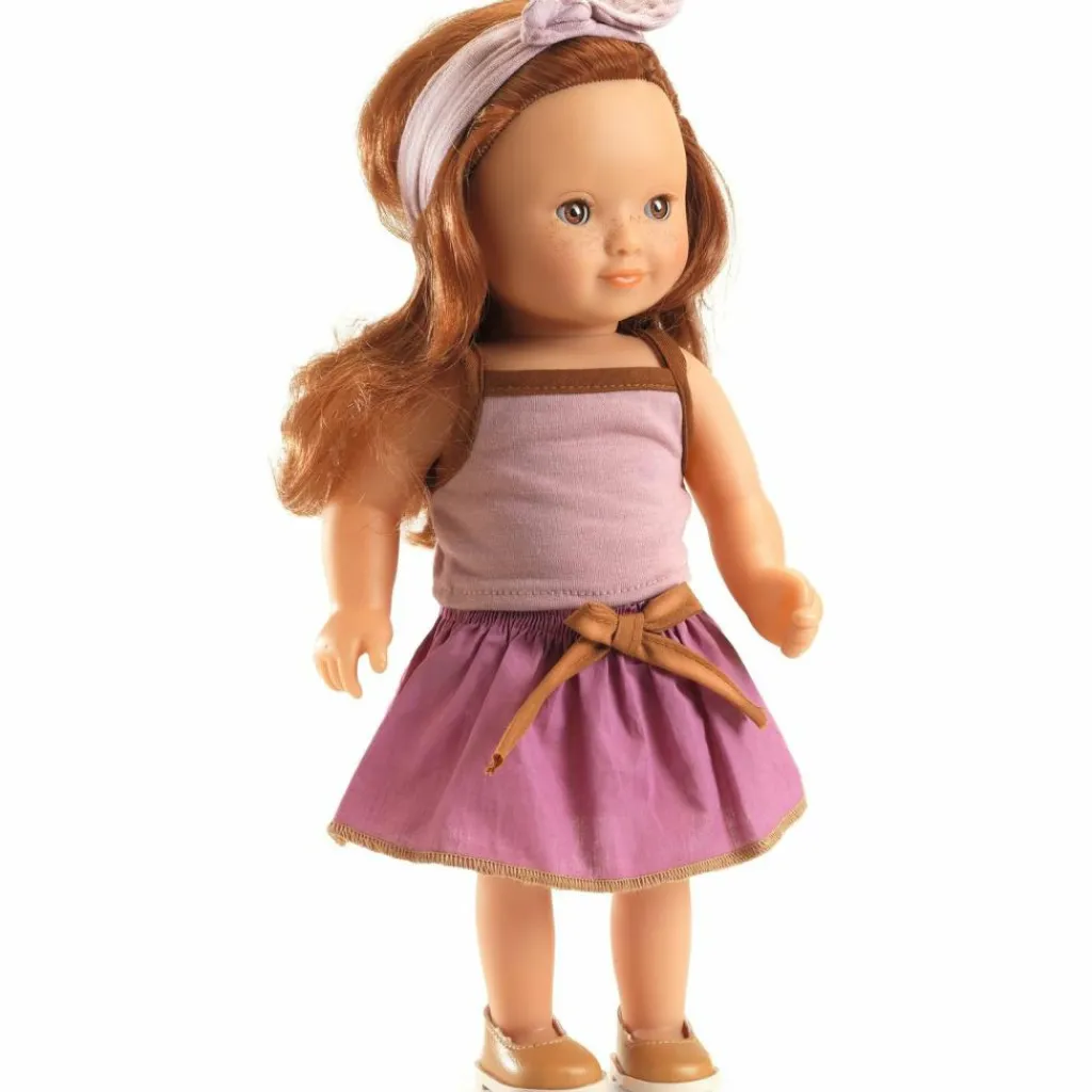 Sophie est une poupée mannequin de 32 cm qui tient debout. Ses longs cheveux roux sont faciles à coiffer. Son visage (vous allez adorer ses taches de rousseur), ses bras et ses jambes sont en vinyle doux au toucher. Elle ferme ses jolis yeux marrons quand on la couche sur le dos. Elle est habillée d’un ensemble jupe, culotte et t-shirt bicolore. Elle est coiffée d’un bandeau assorti et est chaussée d’une paire de ballerines. Cette poupée deviendra vite la nouvelle amie des enfants.