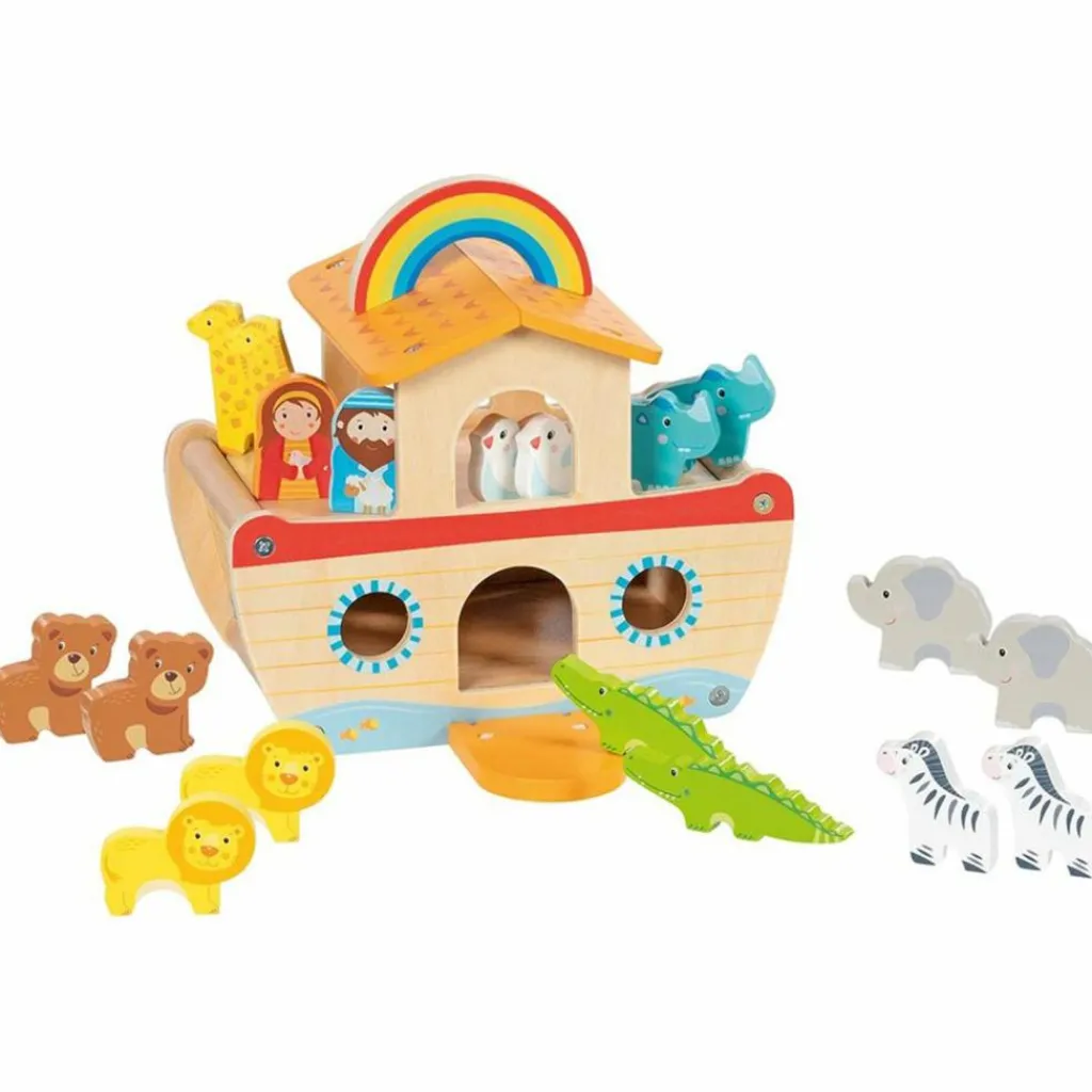 – 2 personnages en bois inclus et divers animaux permettent aux enfants de créer un monde fascinant.