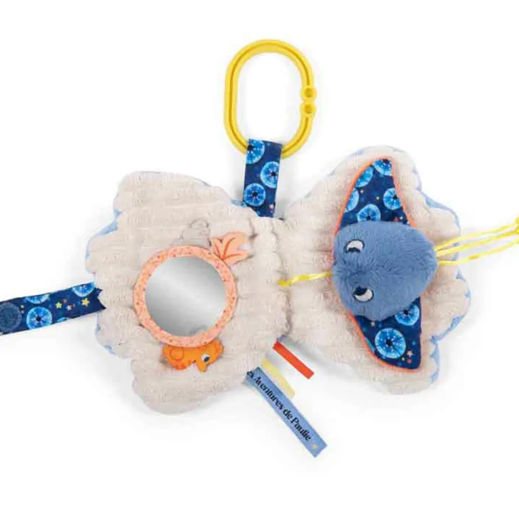 – Plein d’activités : miroir, étiquettes et rubans à attraper, pouët, papier crissant…