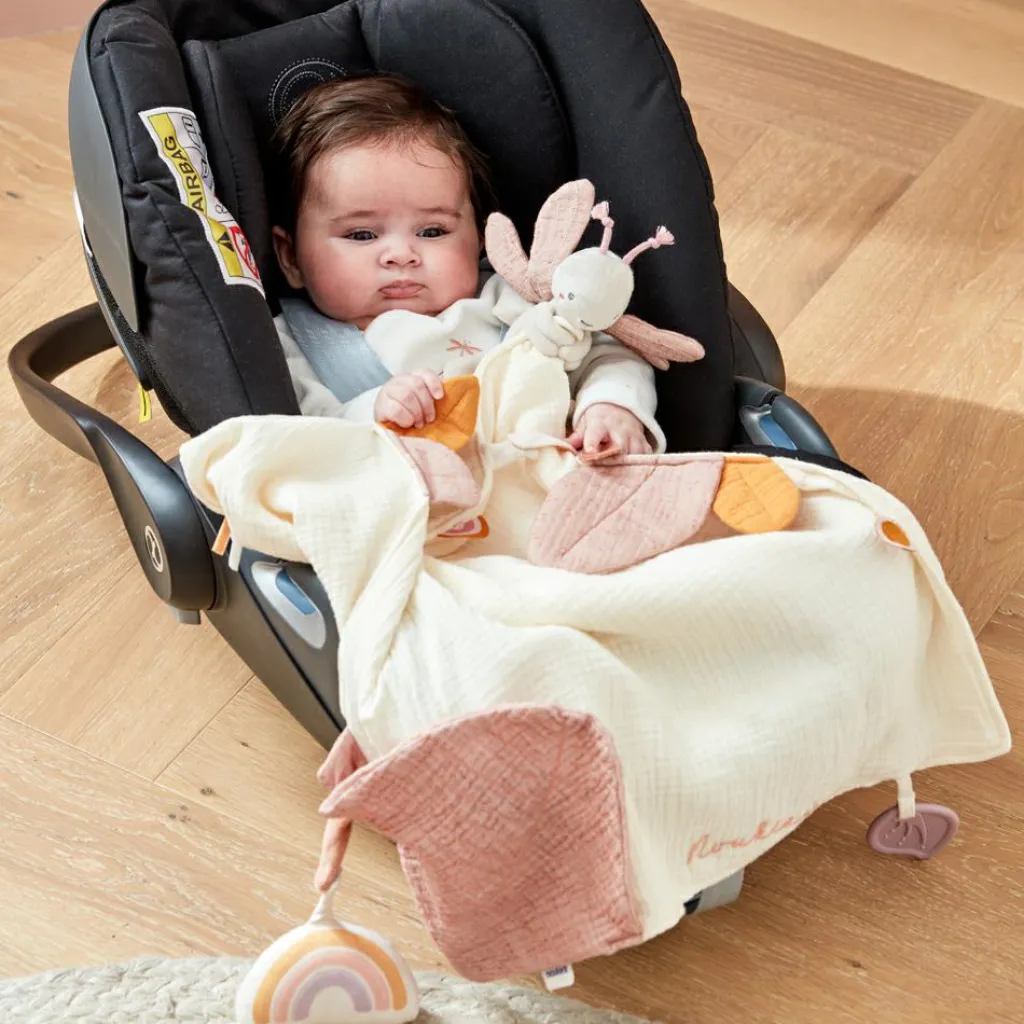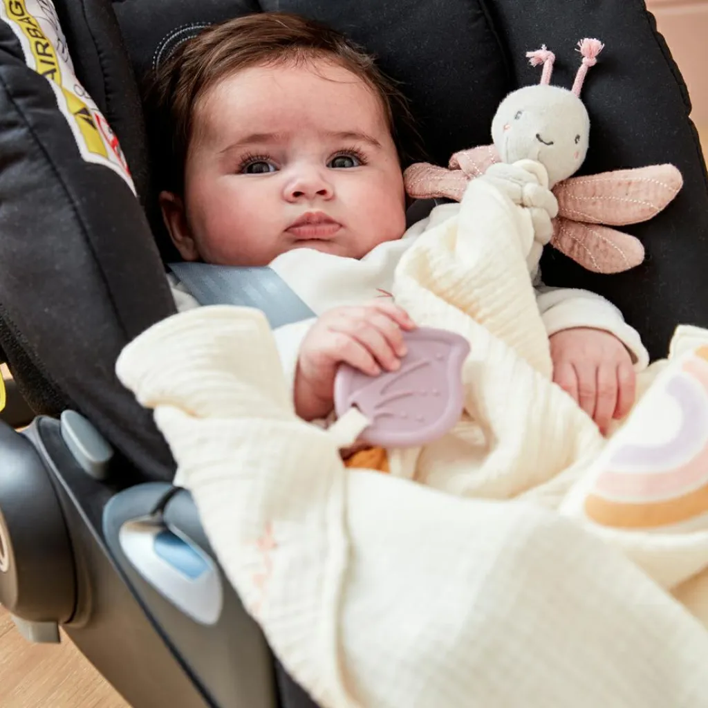 – Pratique, la petite libellule pouët peut être accrochée à la ceinture d’un siège groupe 0.