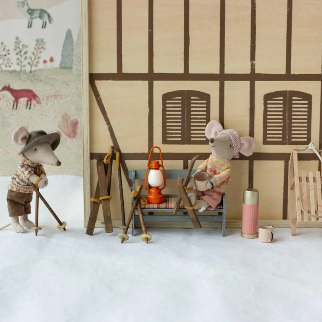 – Avec ce set, vos souris passeront une belle journée à skier sur les pistes, en hiver.