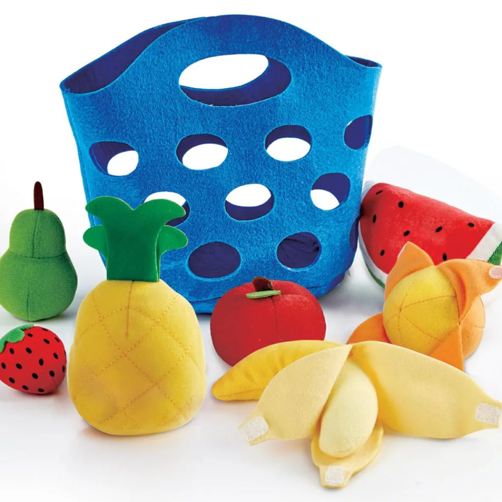 Le panier de fruits de la marque Hape est parfait pour jouer à la marchande. Votre enfant remplira ce doux panier en feutre avec ses fruits préférés. Il pèlera la banane et l’orange et la partagera avec ses amis !