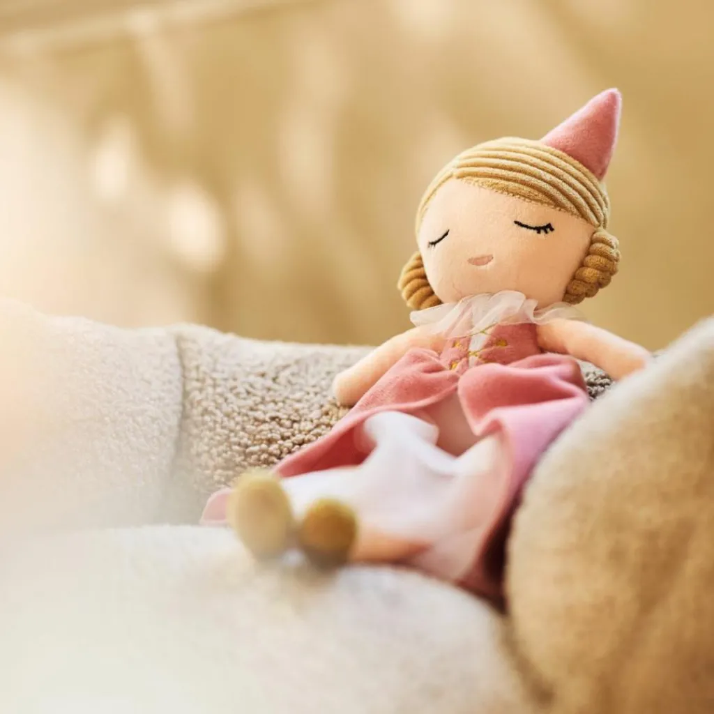 Avec sa robe rose élégante et son jupon en tulle vaporeux, la poupée Lady Lynn de Jollein a tout pour plaire aux petits rêveurs. Véritable invitation à la tendresse et à l’imaginaire, elle devient vite la confidente des histoires les plus magiques.