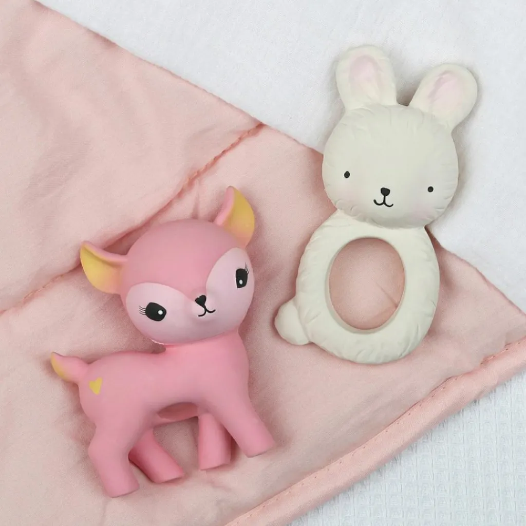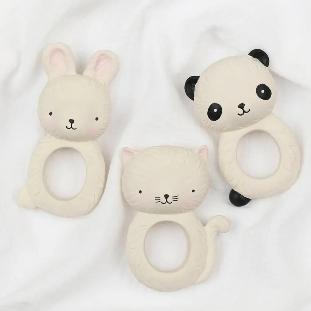 L’anneau de dentition Lapin de la marque A Little Lovely Company soulage les gencives douloureuses de bébé lorsqu’il fait ses dents.