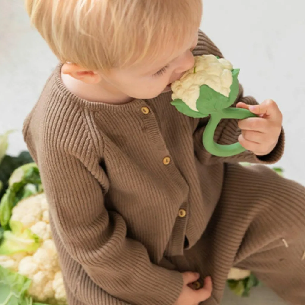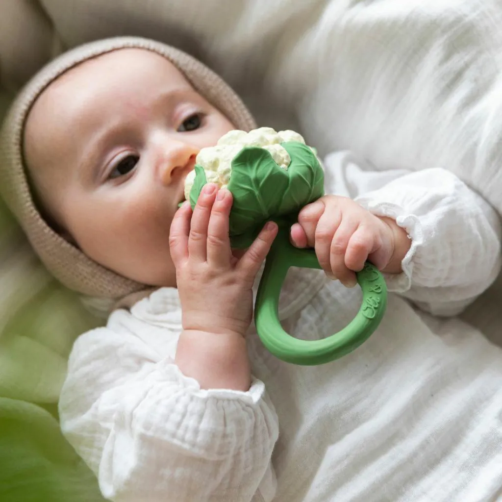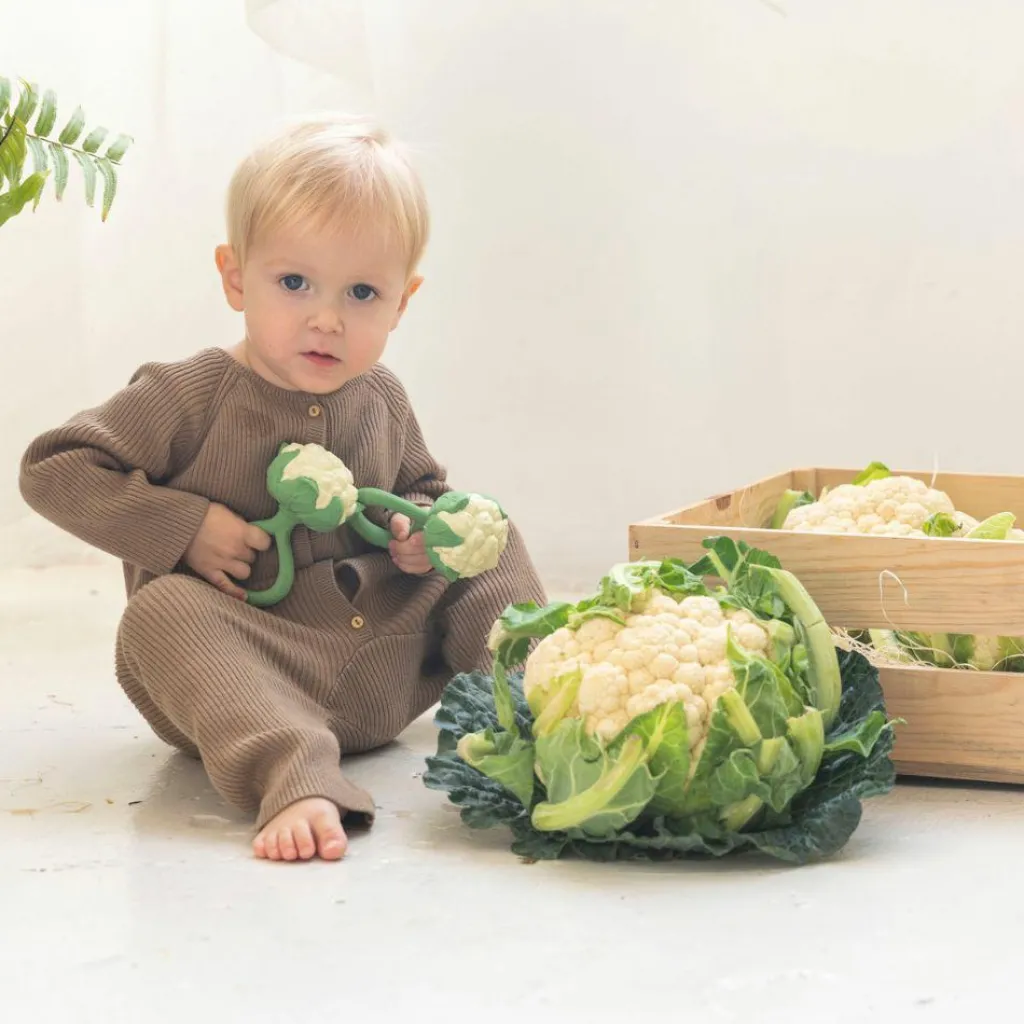 Offrez à votre bébé un moment de calme et de découverte avec le hochet Cauliflower d’Oli&Carol, un jouet 2 en 1 à la fois apaisant et écologique !