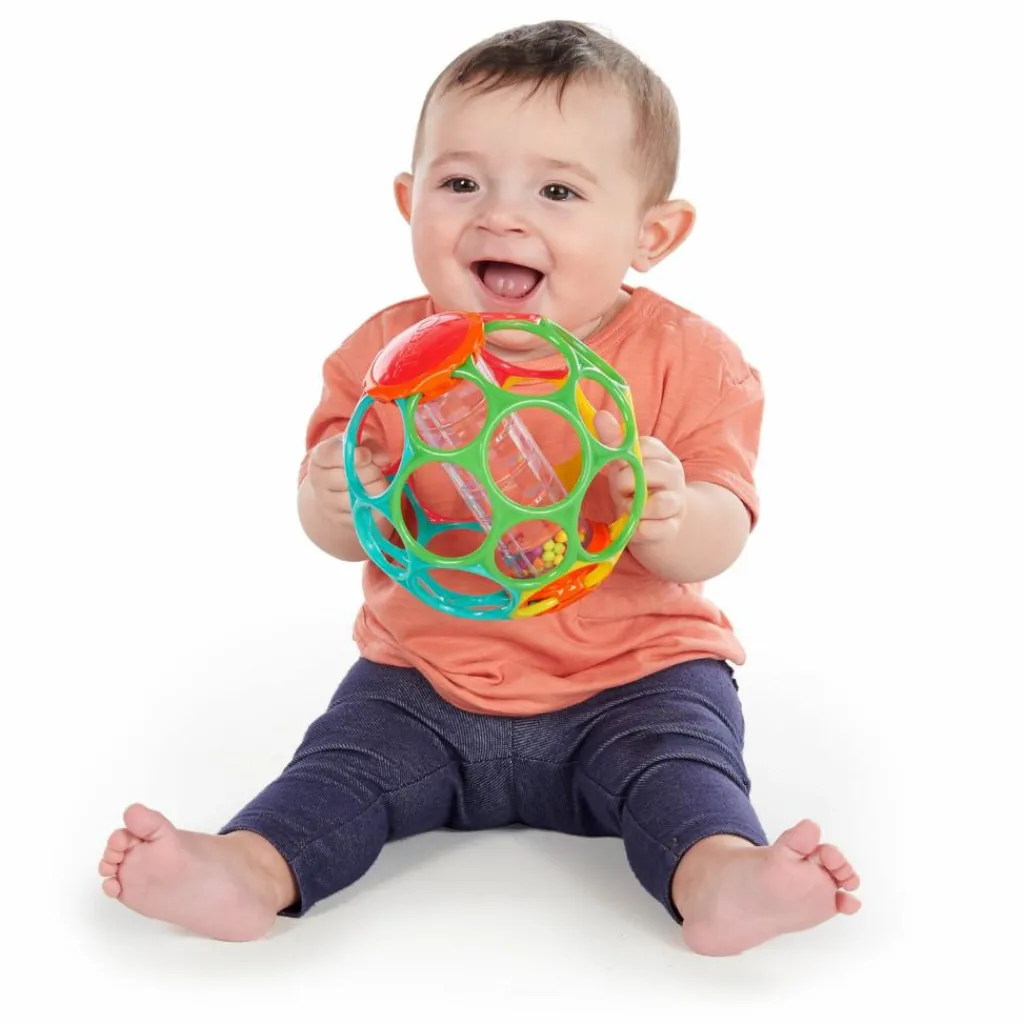 Qu’il pleuve ou qu’il fasse beau, c’est toujours l’heure de jouer avec la balle Rollin’ Rainstick de Bright Starts.