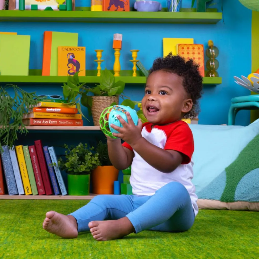 – Fabriquée avec la technologie flexible et durable Oball de Bright Starts, la balle facile à saisir favorise également la motricité fine de bébé.