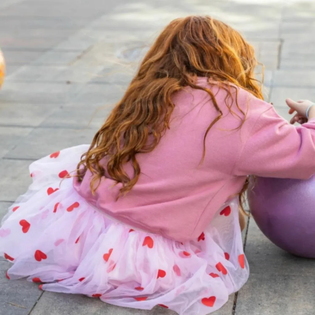 Avec son tulle rose vaporeux et ses cœurs rouges pétillants, la jupe Rosalie illumine chaque tenue d’une touche de magie et de joie. Signée Ratatam, cette jupe légère et dansante est parfaite pour les enfants qui aiment bouger, rire et tournoyer. Sa ceinture élastique douce assure un confort total et un enfilage ultra rapide – idéale pour les kids impatients de briller !