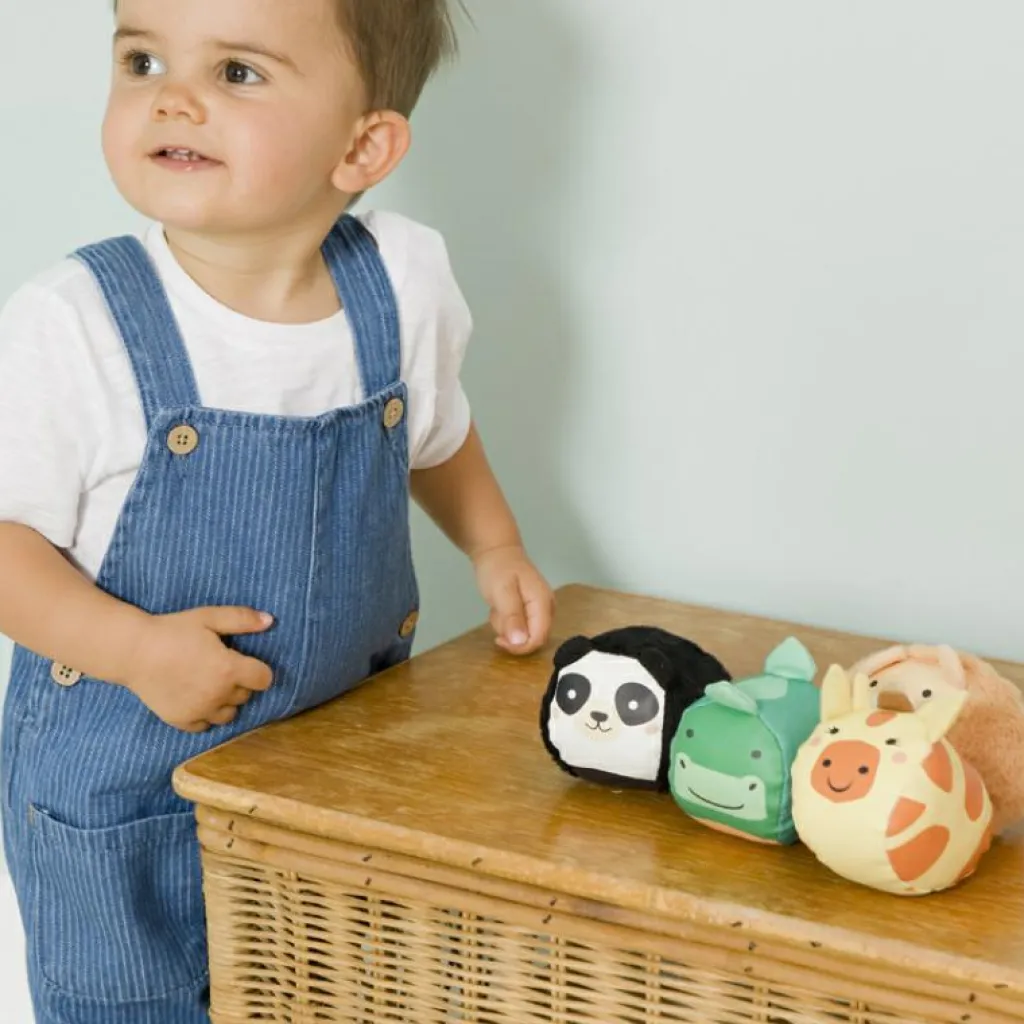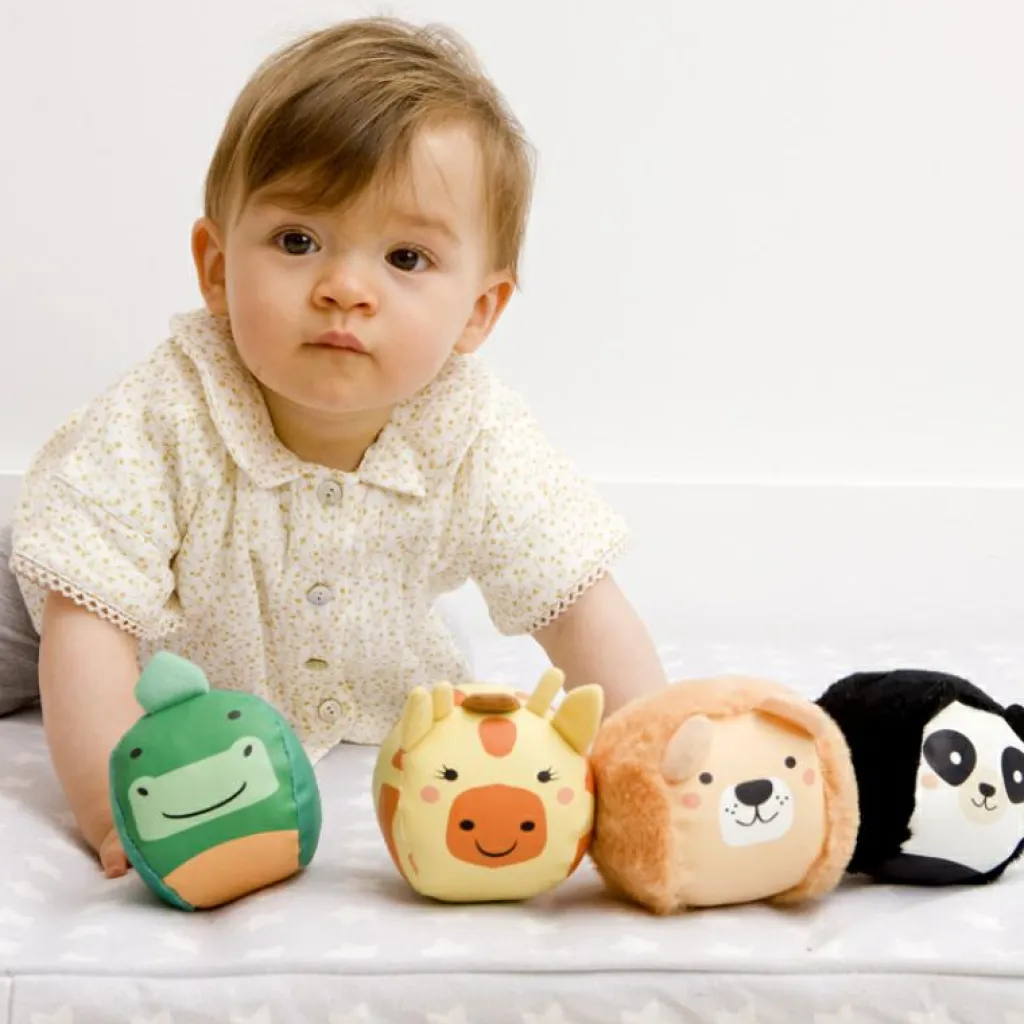 Le lot de 4 balles doudous Jungle Doodballs de la marque Little Big Friends développera la motricité fine et la préhension de votre enfant tout en l’amusant des heures.