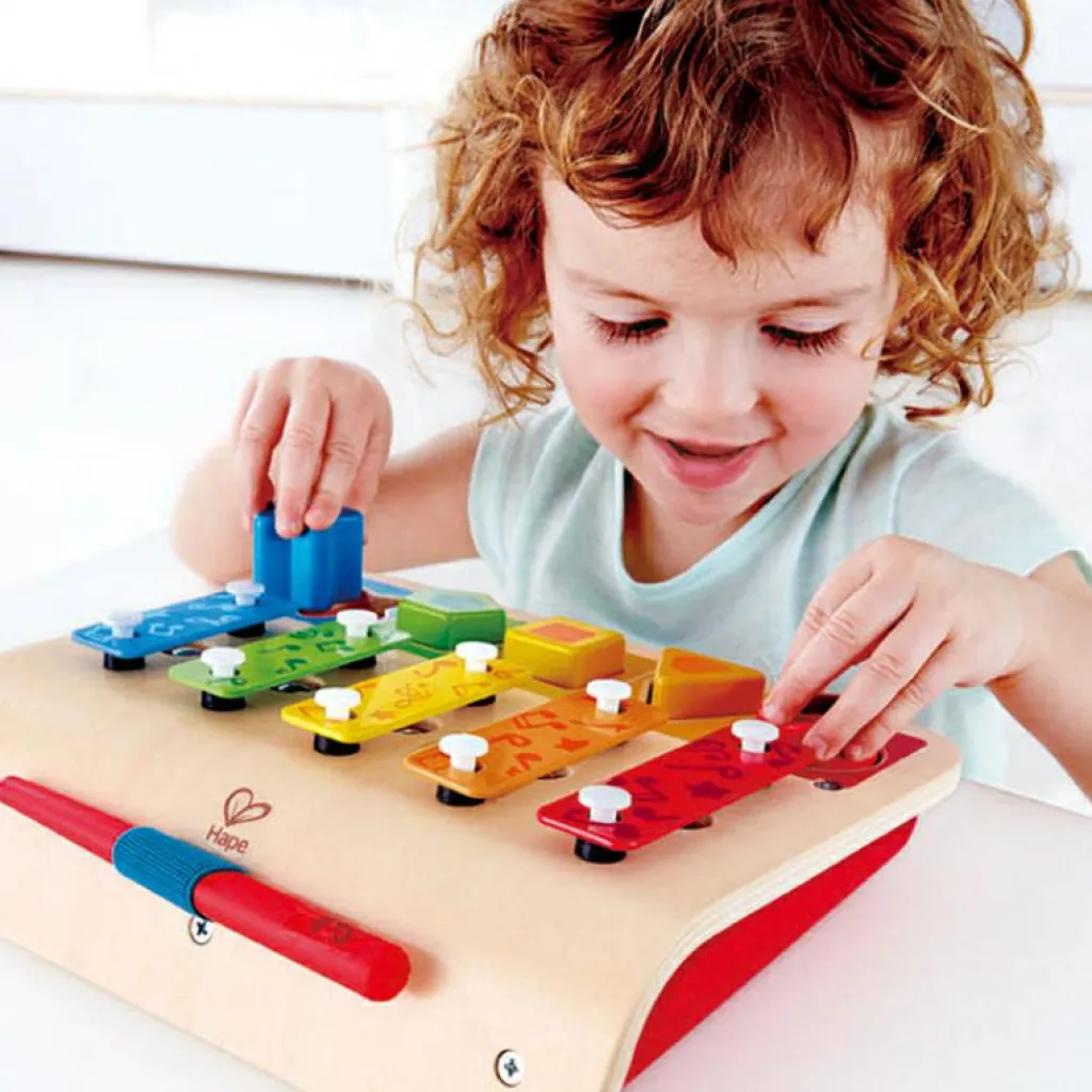 Mon premier xylophone trieur de formes de la marque Hape est idéal pour les petits musiciens en herbe ! Il développe le rythme, la motricité et l’éveil musical des tout-petits. Mon premier xylophone trieur de formes est un xylophone ainsi qu’un jeu de tri de formes !