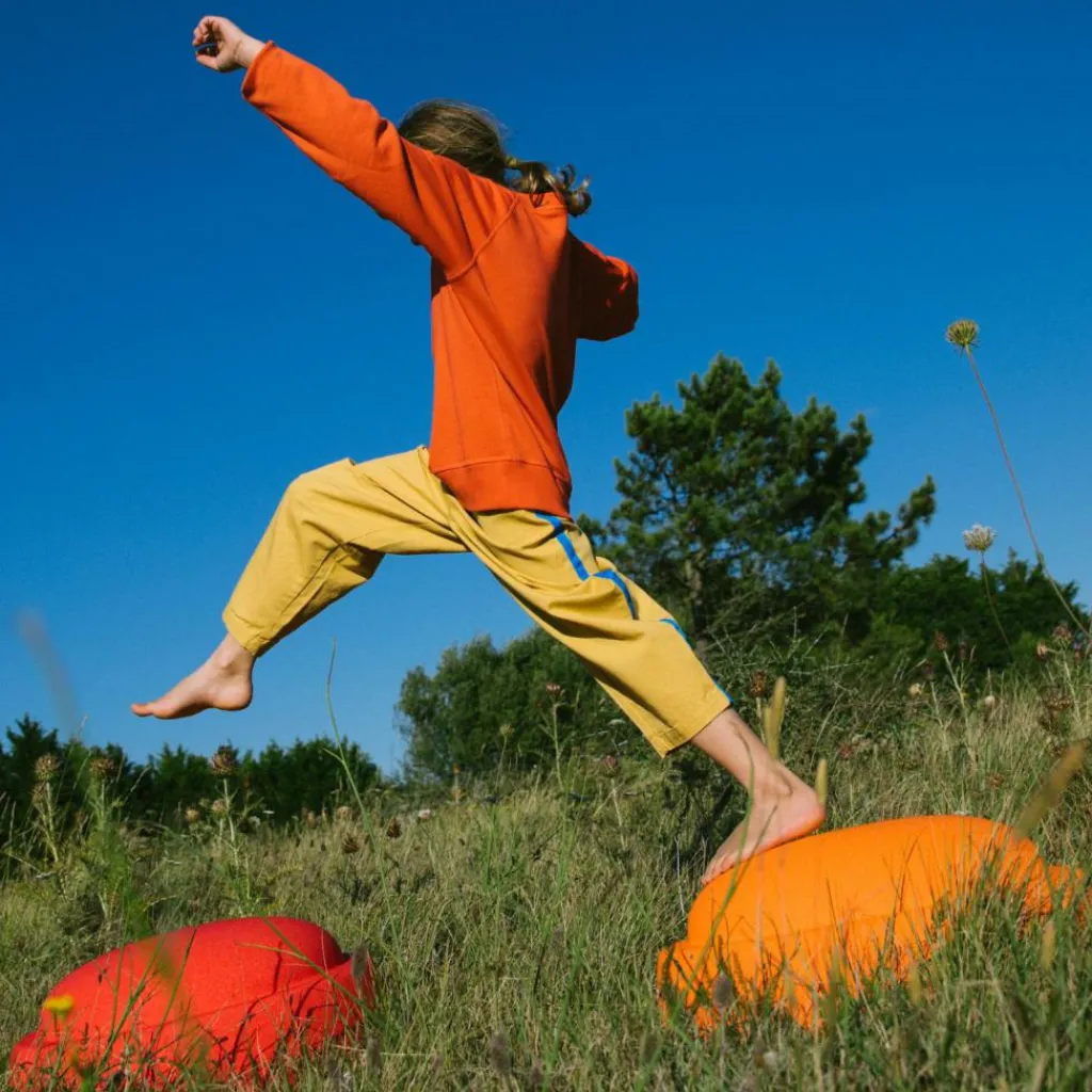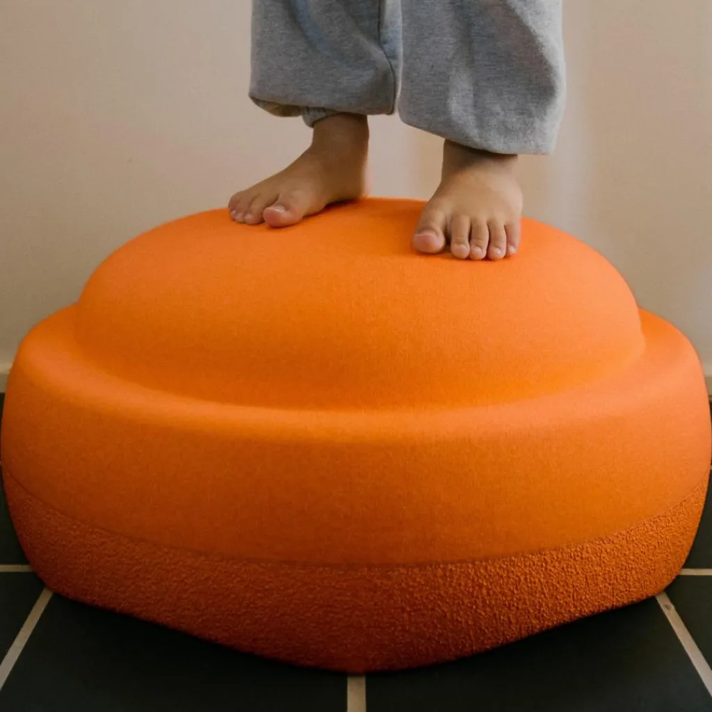 – Évolutif et polyvalent: Peut servir de tabouret, de marche, de plateforme de saut, ou d’élément sensoriel selon l’âge et l’envie de l’enfant.