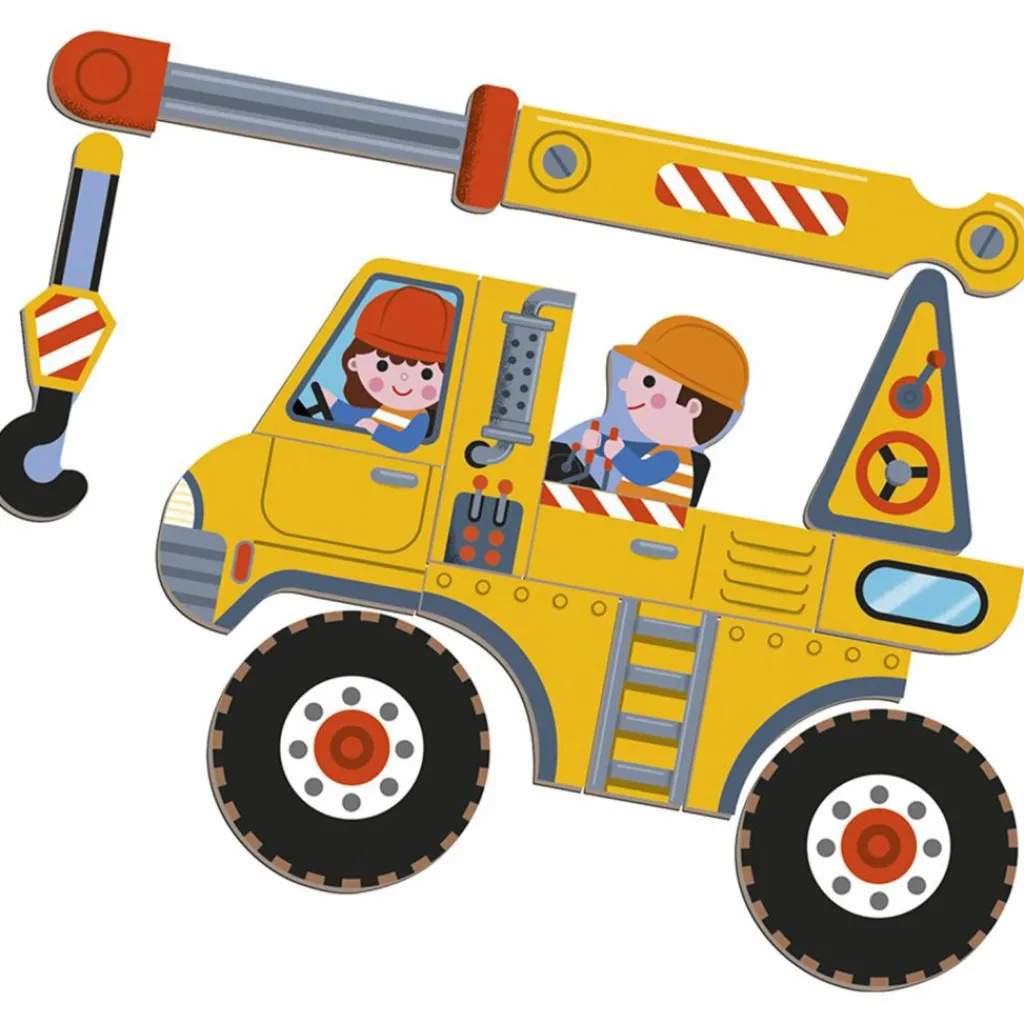 – L’enfant peut jouer en autonomie ou avec un adulte pour nommer les engins, les couleurs ou les formes.