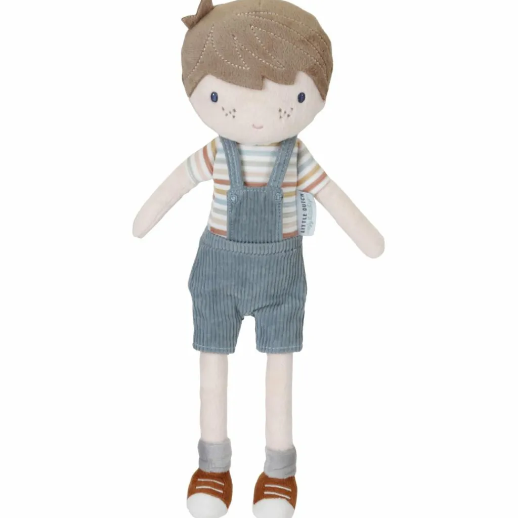 – Cette chouette poupée en peluche, Jim, dans sa tenue de jardinage qui en jette, est douce et agréable à câliner.