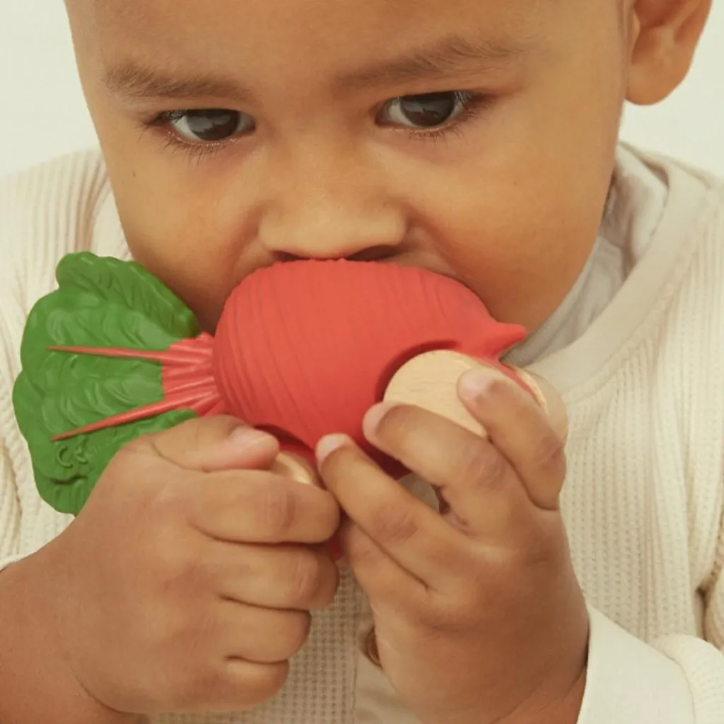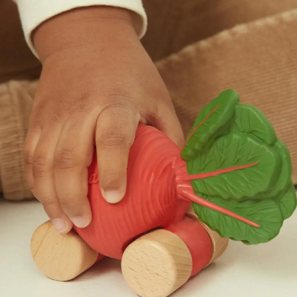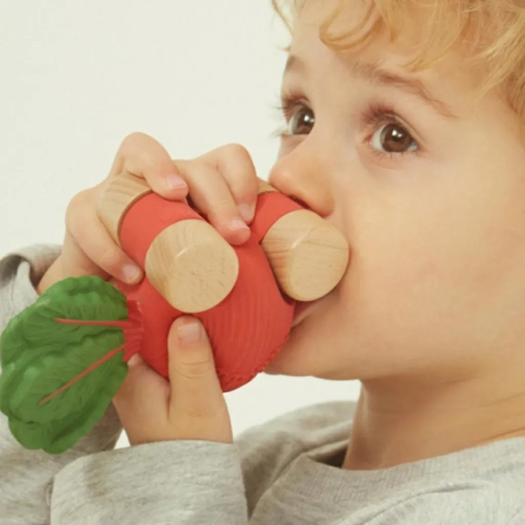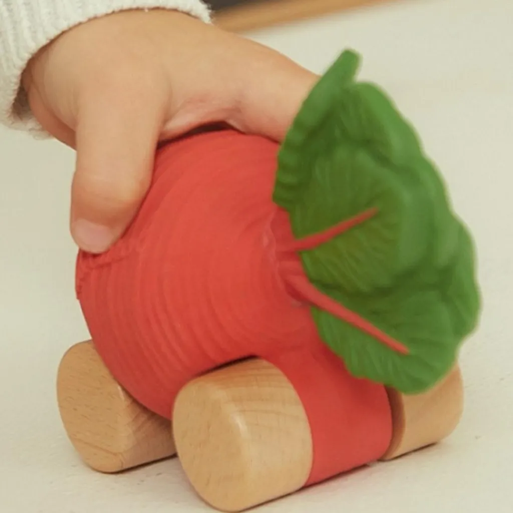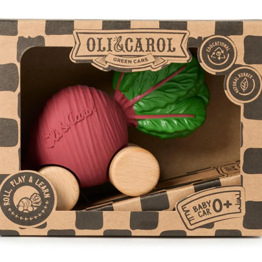 Inspirée d’une petite betterave malicieuse, Betty The Beetroot roule vers l’amusement tout en respectant la planète. Fabriquée à la main en caoutchouc naturel et en bois FSC, cette voiture sensorielle est douce, souple et totalement sûre pour bébé. Chaque exemplaire est peint à la main avec des pigments naturels, ce qui rend chaque jouet unique !