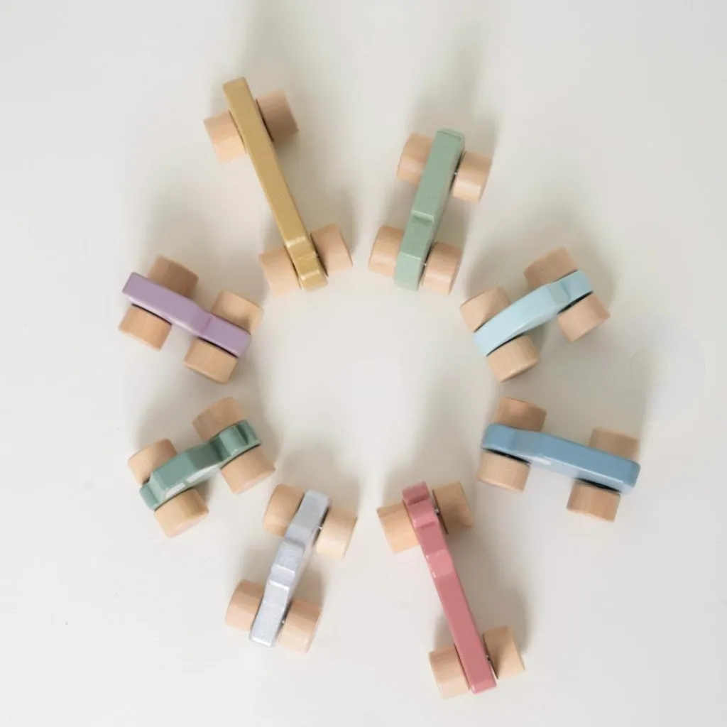 – Contient 8 véhicules en bois de taille et de couleur différente dans un sac en coton à imprimé véhicules.