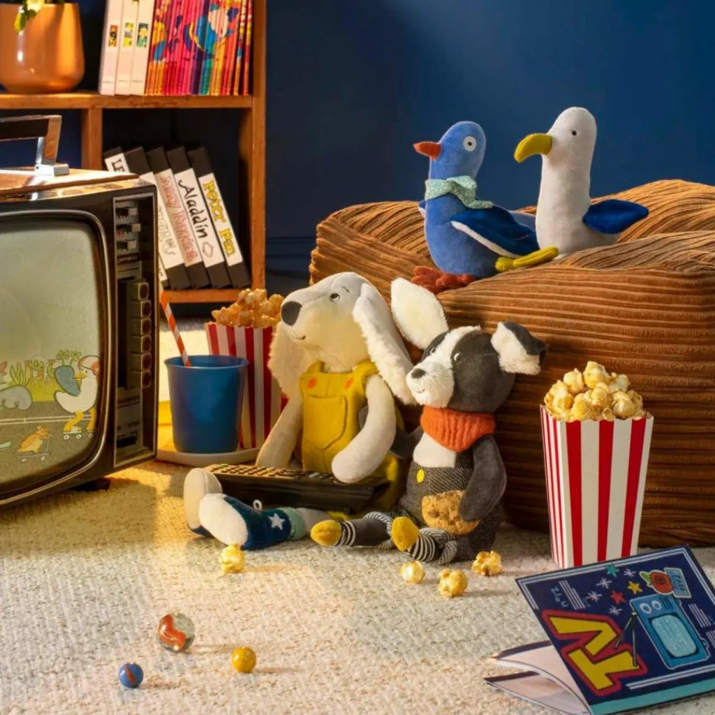 – Pilou le malicieux dans sa petite salopette jaune et avec ses grandes oreilles toutes douces, ne demande qu’à faire des câlins !
