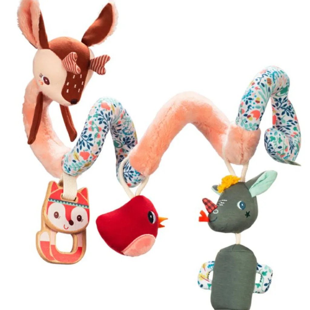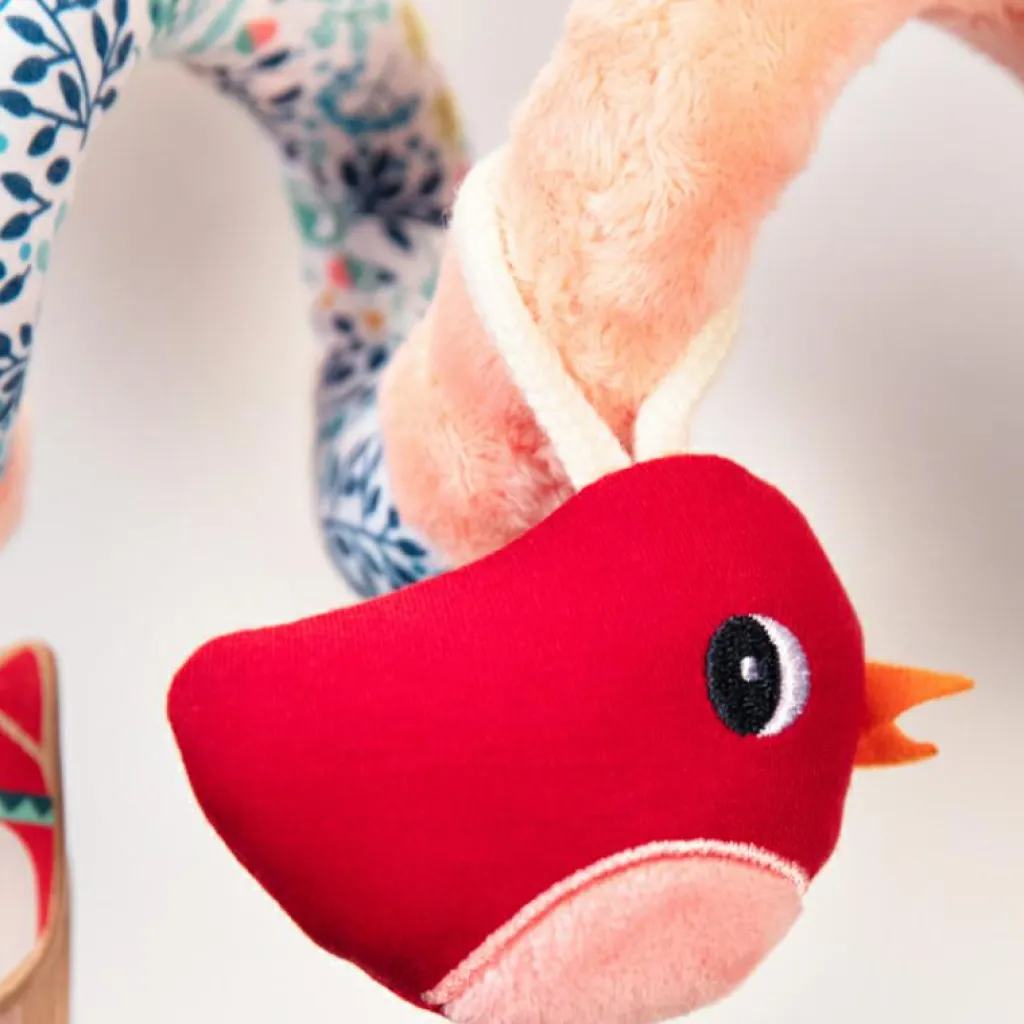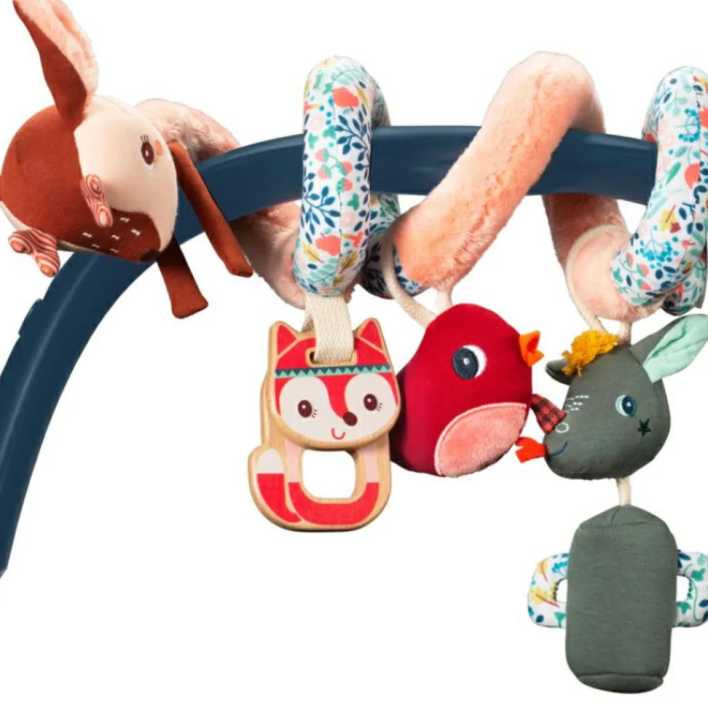 – Plusieurs activités et sons à découvrir : hochet en bois, pouët, miroir…