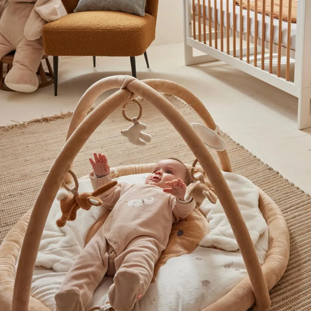– Exploration et découverte : les différents éléments attachés au tapis, tels que les jouets suspendus et les petits miroirs, encouragent votre bébé à explorer son environnement et à découvrir de nouvelles formes, textures et sons.