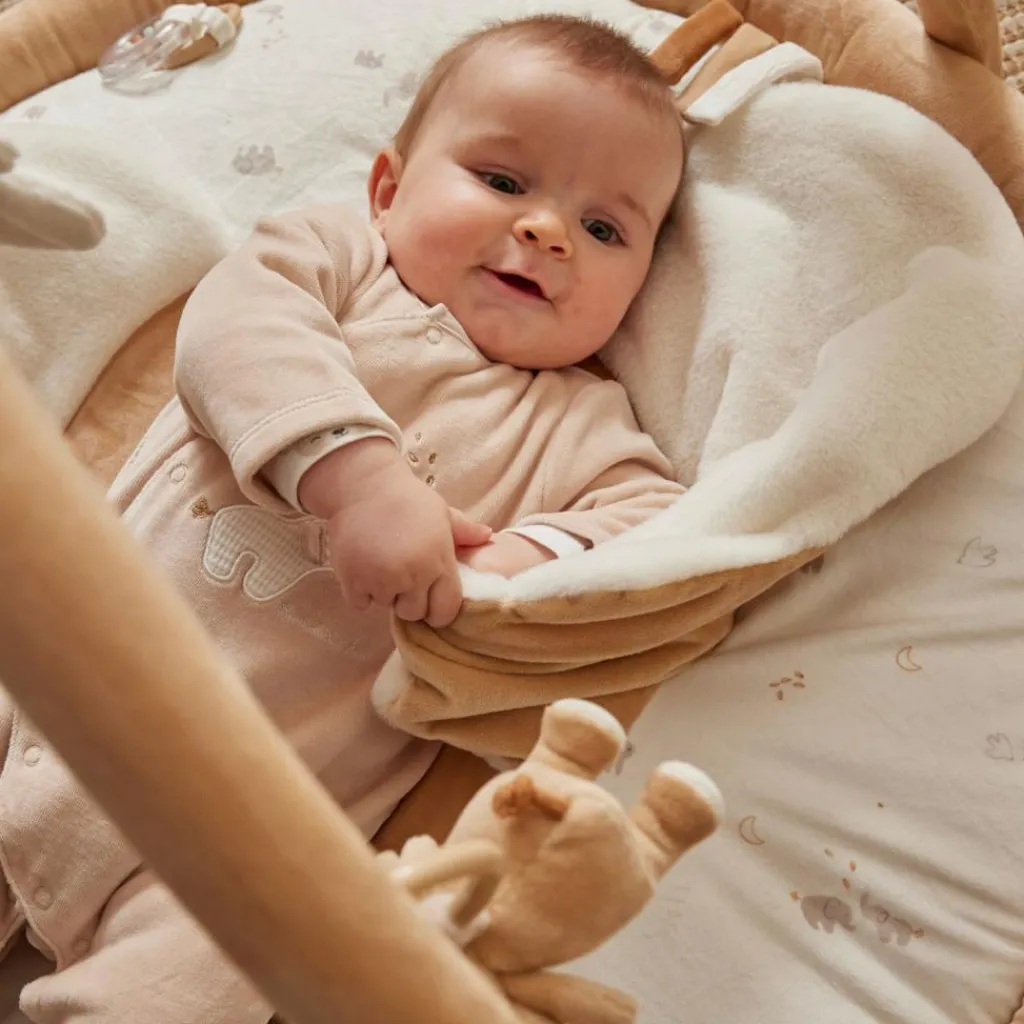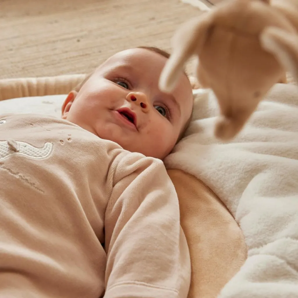 – Le tapis d’éveil Bali, en veloudoux, constitue un espace idéal pour que votre bébé puisse jouer, explorer et se développer de manière ludique et sécurisée.
