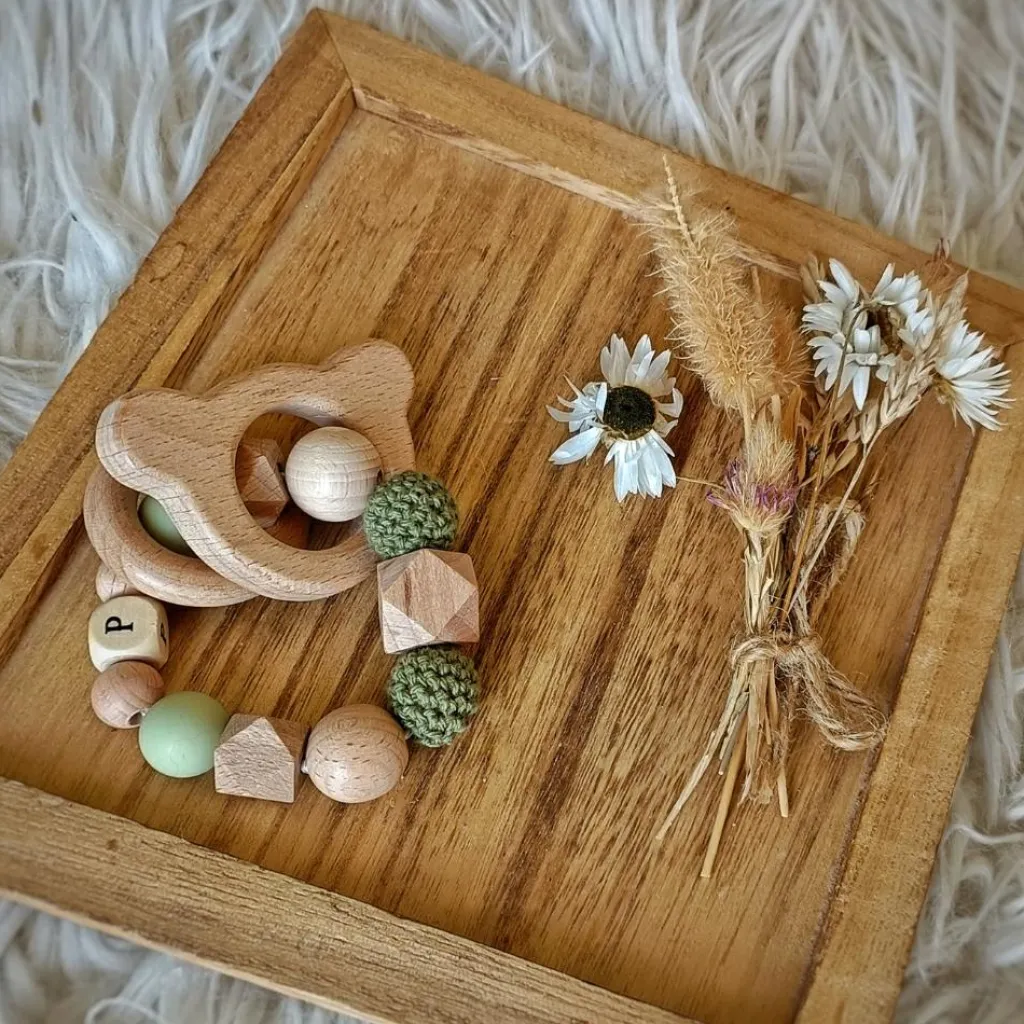 Outlet Anneau de dentition en bois ours olive et kaki (personnalisable) Jouet / Anneau De Dentition