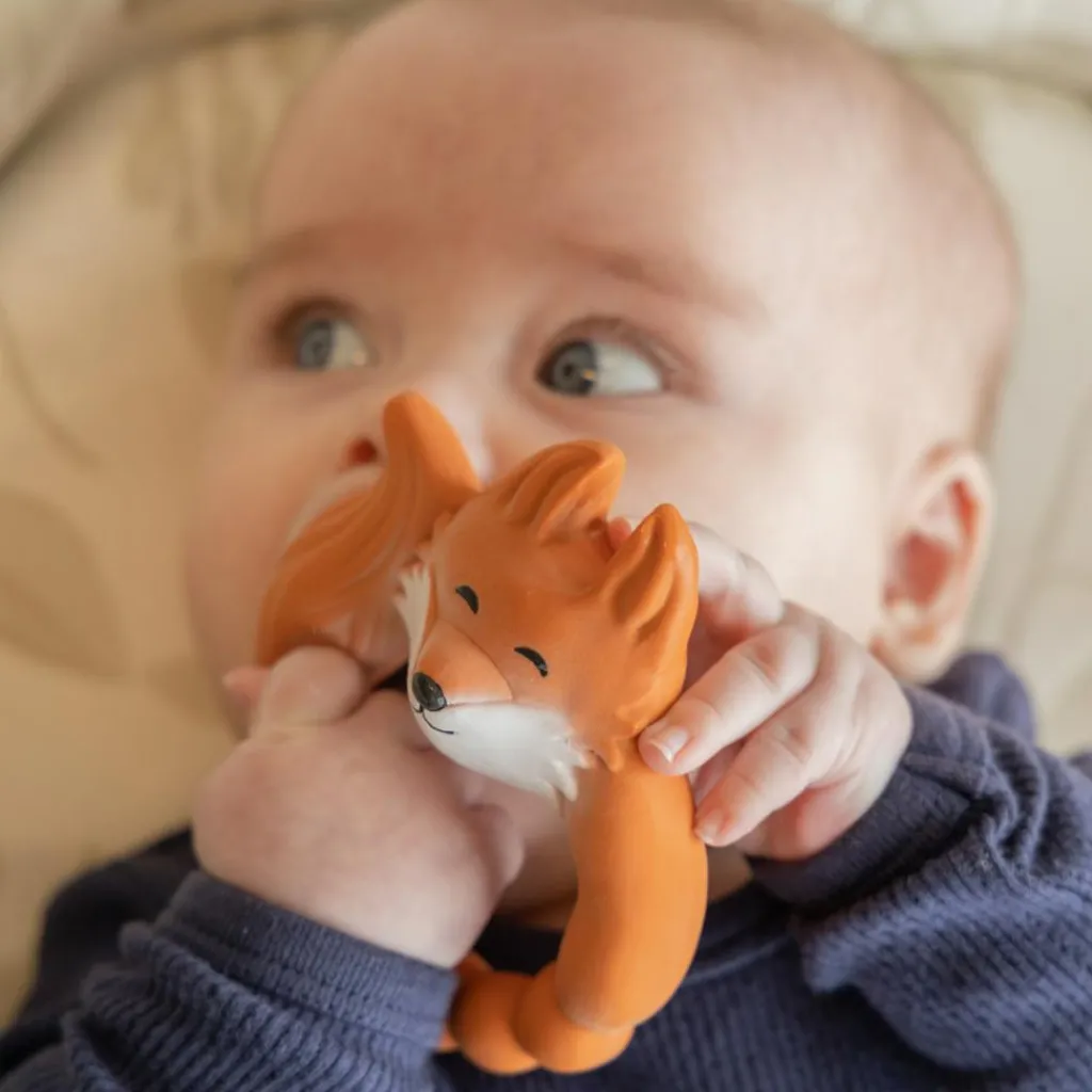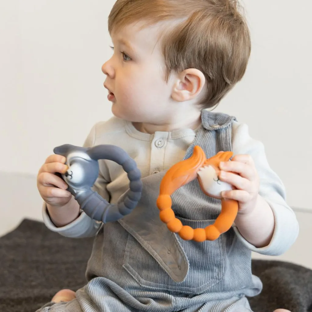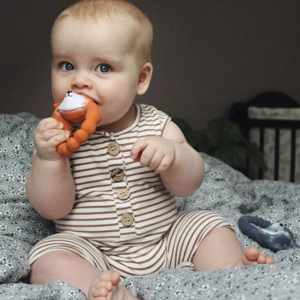 L’ anneau de dentition Renard de la marque Natrüba soulagera les gencives douloureuses de votre bébé pendant les poussées dentaires. En caoutchouc naturel issu de l’hévéa, et grâce à ses différentes textures, ce mignon renard stimulera les sens de votre tout-petit.