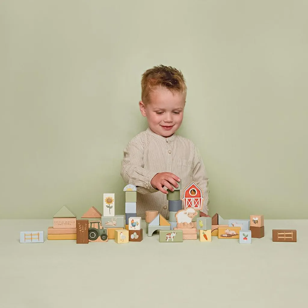 – Le set contient pas moins de 50 blocs de bois avec de belles impressions de notre collection Little Farm.