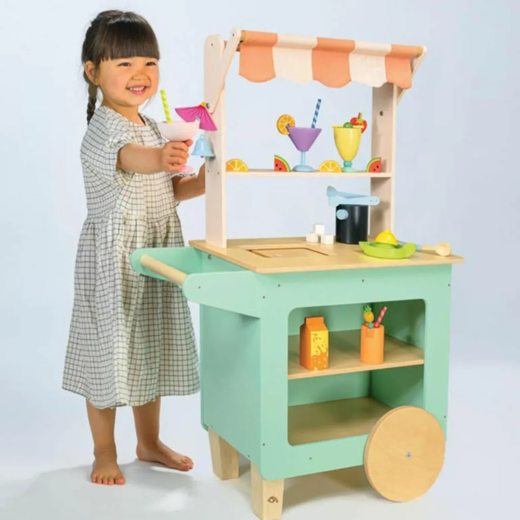 Faites pétiller l’imagination de votre enfant avec le Chariot à boissons Tender Leaf, un bar miniature coloré et lumineux qui transforme chaque jeu en véritable fête !