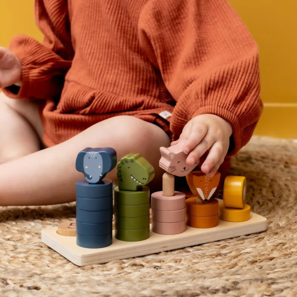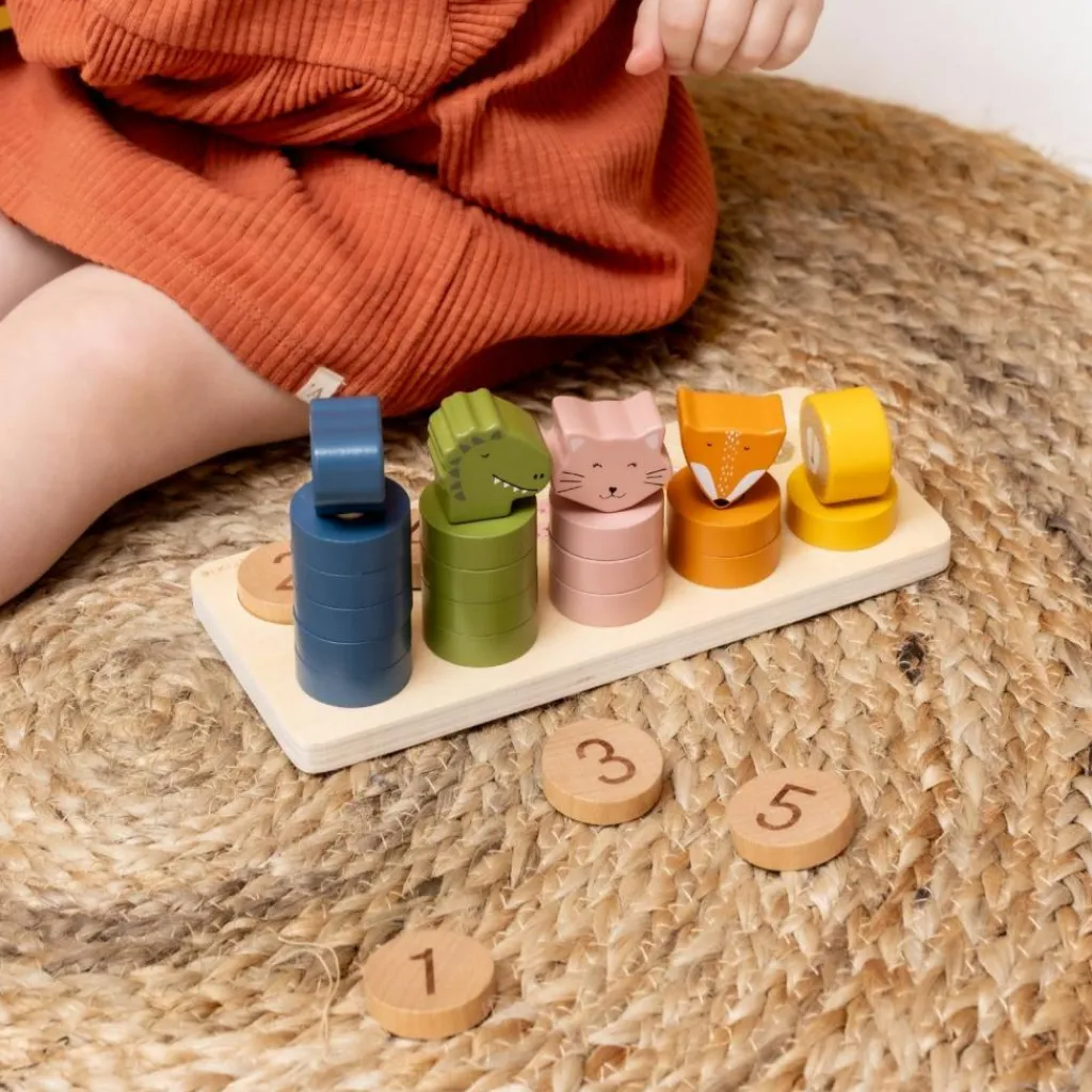 Un puzzle éducatif et ludique ! Avec ce jouet à encastrer 2 en 1 en bois Trixie, les enfants apprennent à compter tout en s’amusant avec leurs animaux préférés. Chaque chiffre de 1 à 5 est associé à un animal et à des arcs colorés à empiler, permettant de développer à la fois la motricité fine et la logique. Un jeu parfait pour accompagner les premiers apprentissages de façon amusante et intuitive.