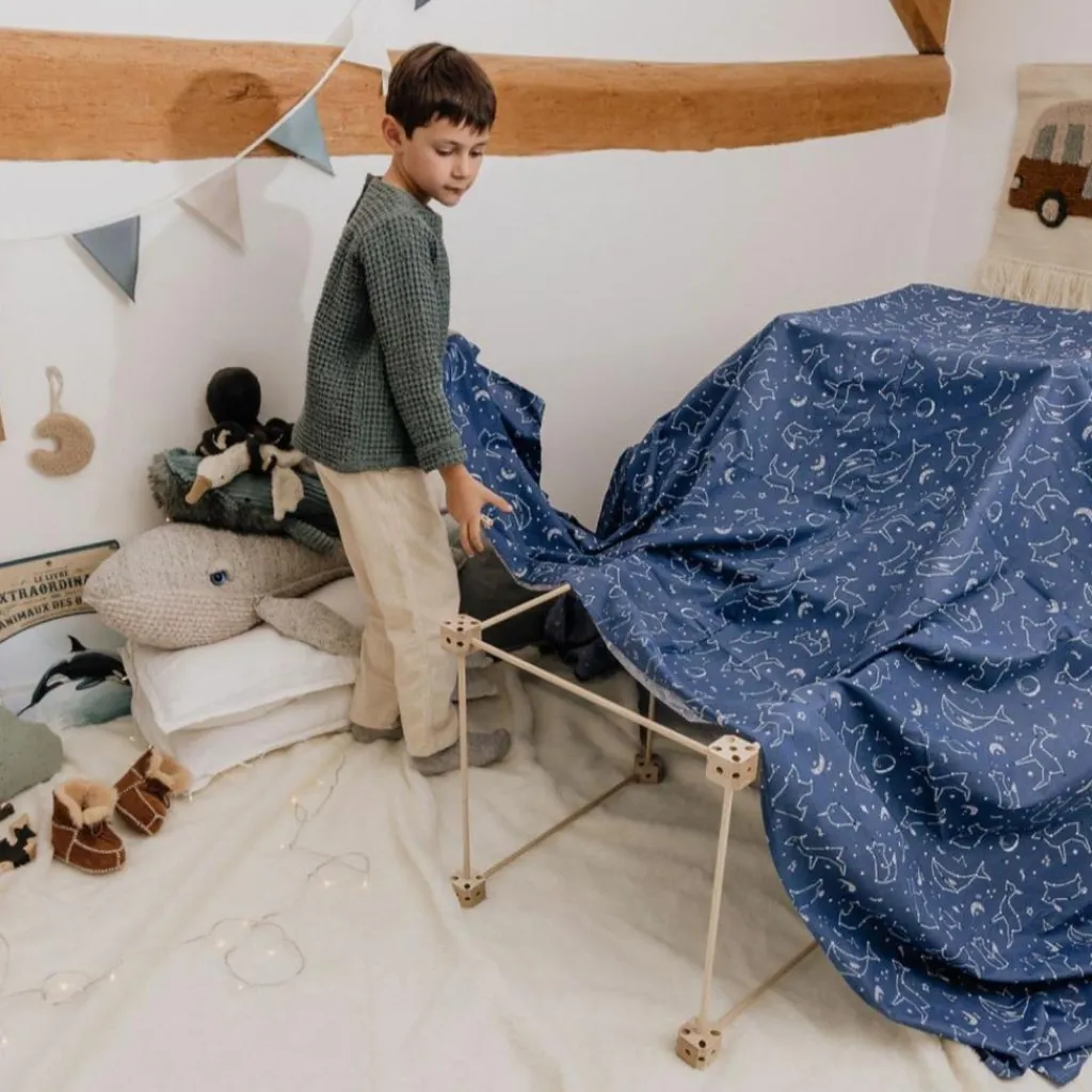 Découvrez le principe 1001 Cabanes avec le Pack Ecureuil kit de construction de cabanes d’intérieur pour enfants – Modulable, créatif, fabriqué en bois et en tissu 100% coton. Avec le Pack Ecureuil – 1001 Cabanes, vos enfants pourront construire des structures modulables de toute forme, et exprimer leur créativité pour imaginer des décors à leurs histoires. Aujourd’hui un igloo, hier un château, demain un bateau…