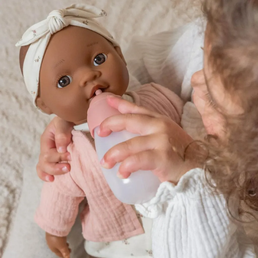 Avec son visage attendrissant et son corps souple, Noa est le compagnon parfait pour les câlins et les jeux de soin. Habillée d’une jolie tenue à motifs et d’une veste rose tendre, elle est accompagnée d’un biberon et d’une tétine.