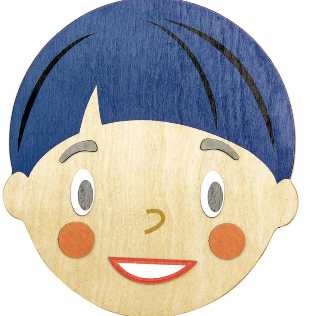 – Base en bois en forme de visage.