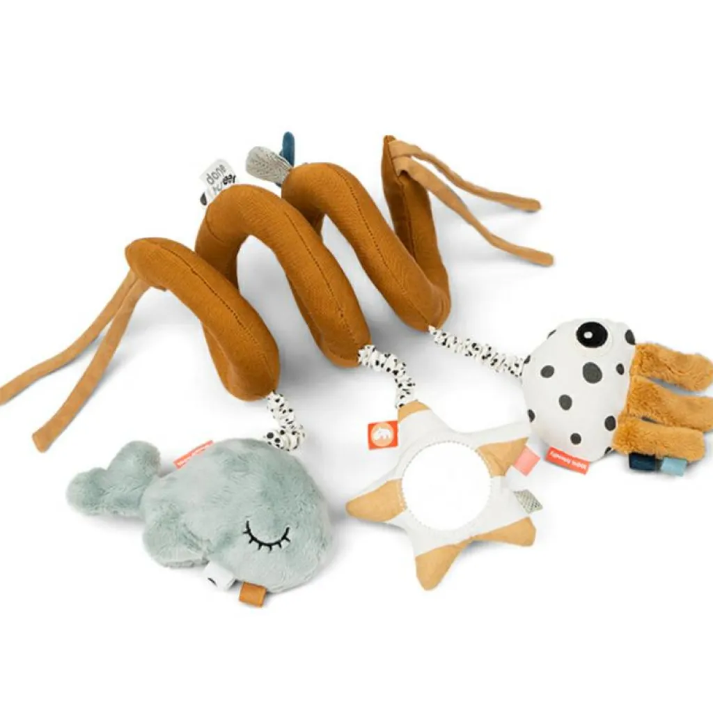 La spirale d’activités moutarde Sea friends de la marque Done by Deer comporte de multiples activités pour stimuler le développement sensoriel de bébé et surtout l’amuser !