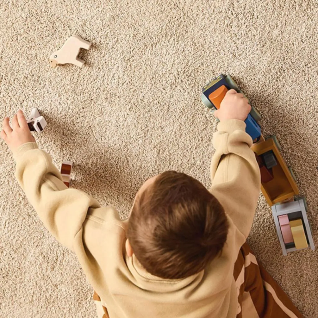Le jeu est enrichi par trois blocs de bois empilables, parfaits pour trier, équilibrer et développer la motricité fine. Adapté dès 12 mois, ce jouet encourage la coordination, le jeu pratique et la créativité. Fabriqué en bois avec une teinte à base d’eau respectueuse de l’environnement, il allie durabilité, sécurité et charme intemporel.