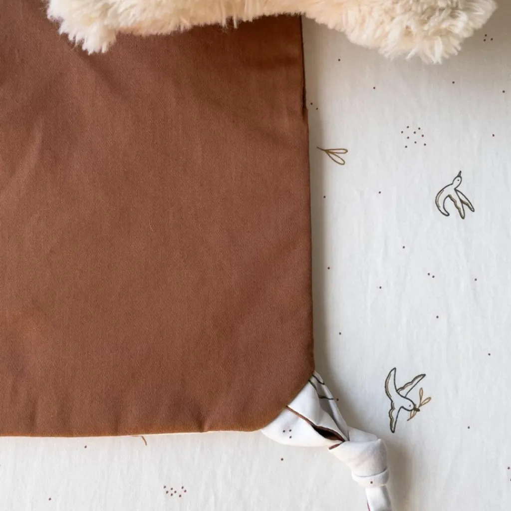Habillé de jolis motifs d’oiseaux en plein envol, ce doudou incarne la douceur et la légèreté des premiers instants de vie. Chaque détail a été imaginé pour favoriser un climat rassurant et poétique, propice aux câlins et aux songes paisibles.