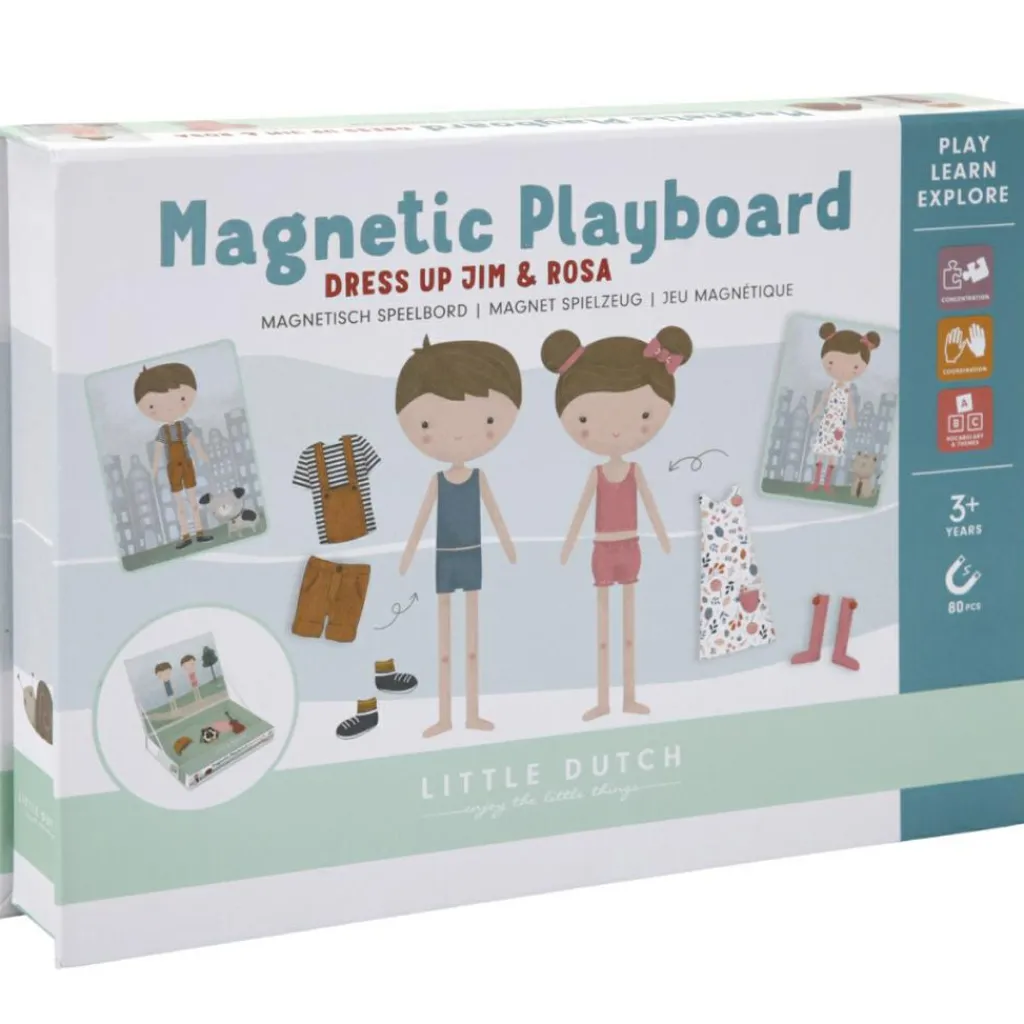 Le jeu magnétique Jim & Rosa de la marque Little Dutch développe la coordination et la concentration de votre enfant qui devra s’amuser à habiller ses deux nouveaux amis.