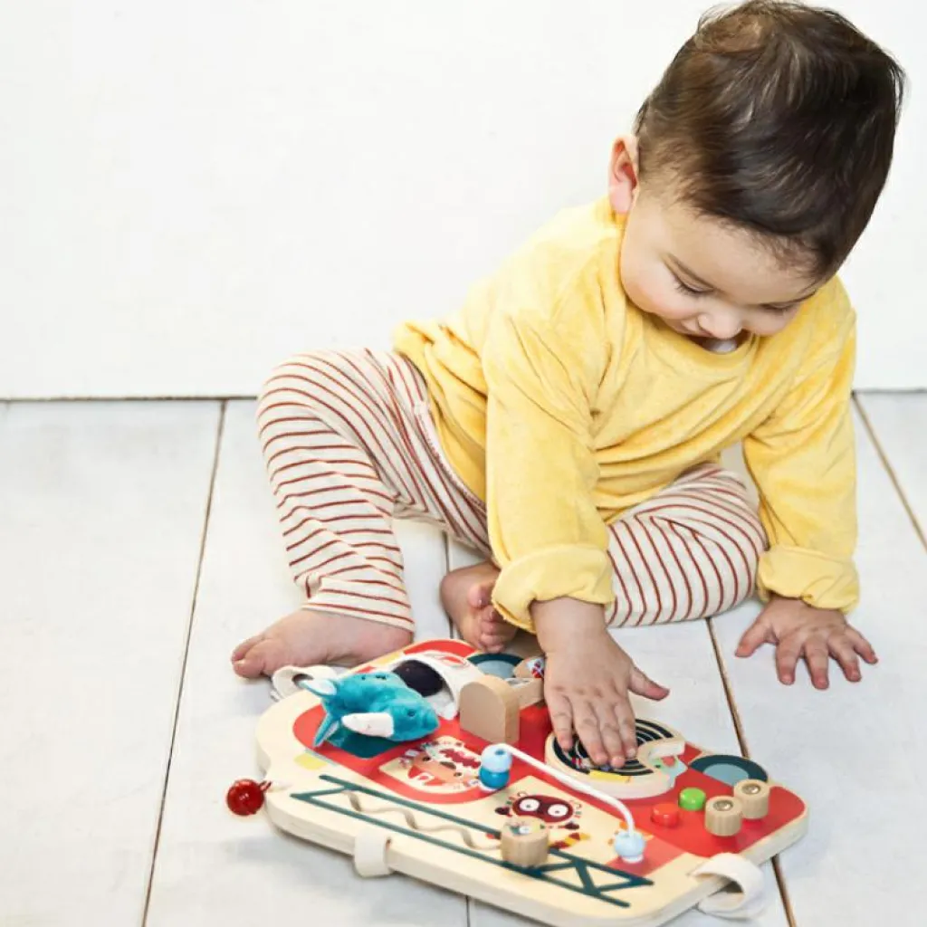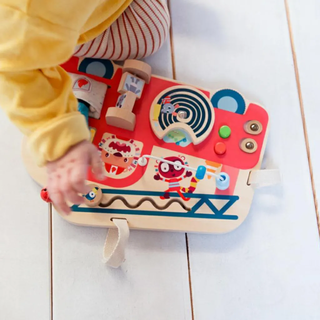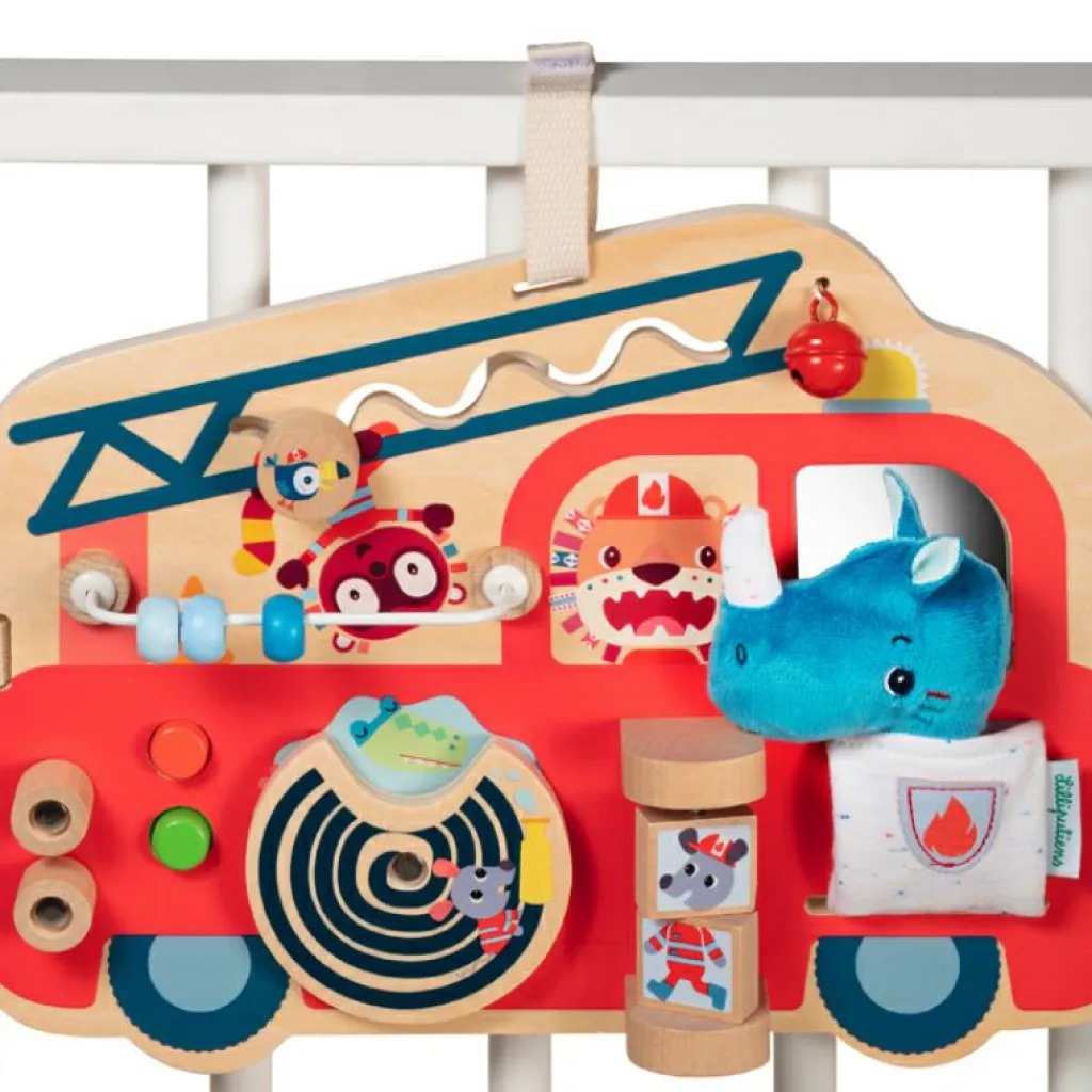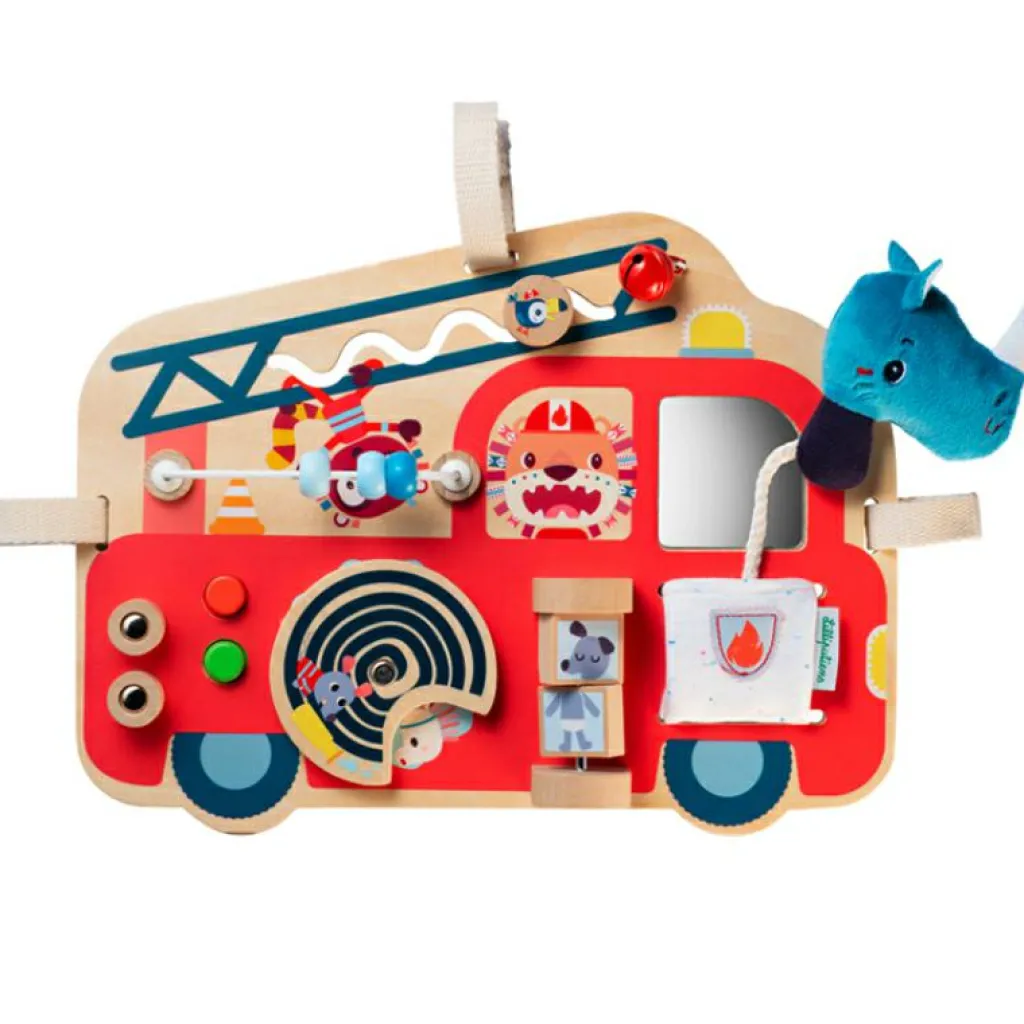 Le panneau d’activités Camion de pompier de la marque Lilliputiens développe la motricité fine des tout-petits grâce aux nombreuses activités. L’enfant découvre des formes, des textures, des couleurs…