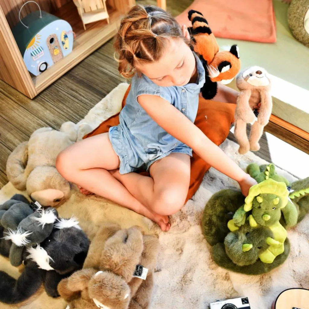Son design attachant et sa texture ultra douce en font bien plus qu’une peluche : c’est un accessoire plein de charme à emporter partout. Léger et facile à transporter, il deviendra vite votre petit compagnon de voyage préféré, que ce soit en voiture, en train, en avion ou à la maison. Avec sa couleur verte apaisante et son regard adorable, le Dinosaure Podcoll ajoutera une touche de douceur et d’originalité à votre quotidien.