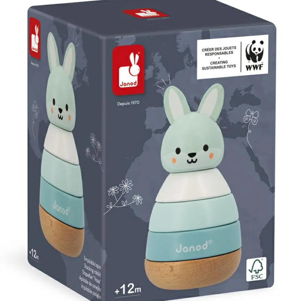 – Comprend 1 lapin et 4 pièces à empiler.