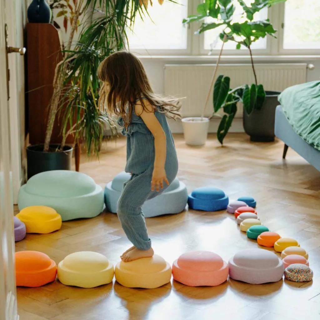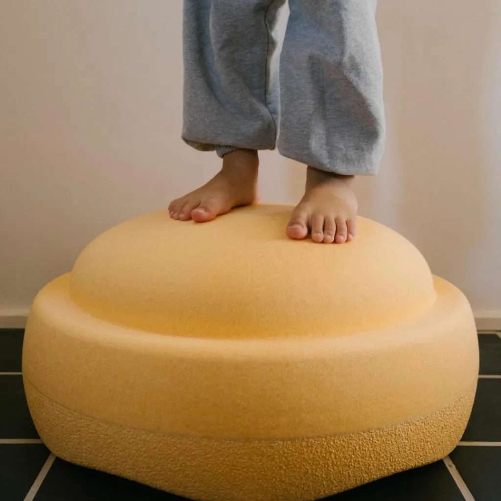 – Évolutif et polyvalent: Peut servir de tabouret, de marche, de plateforme de saut, ou d’élément sensoriel selon l’âge et l’envie de l’enfant.