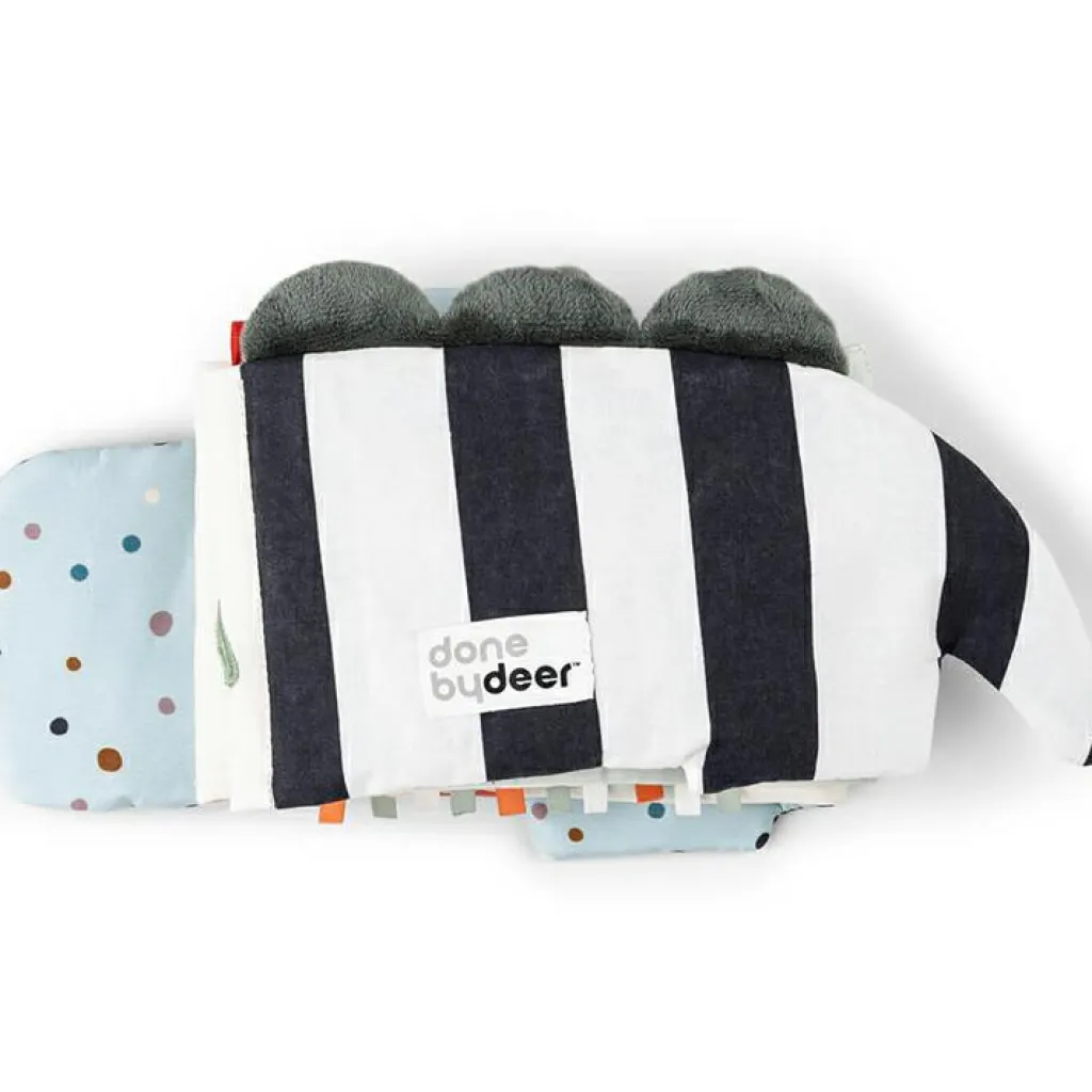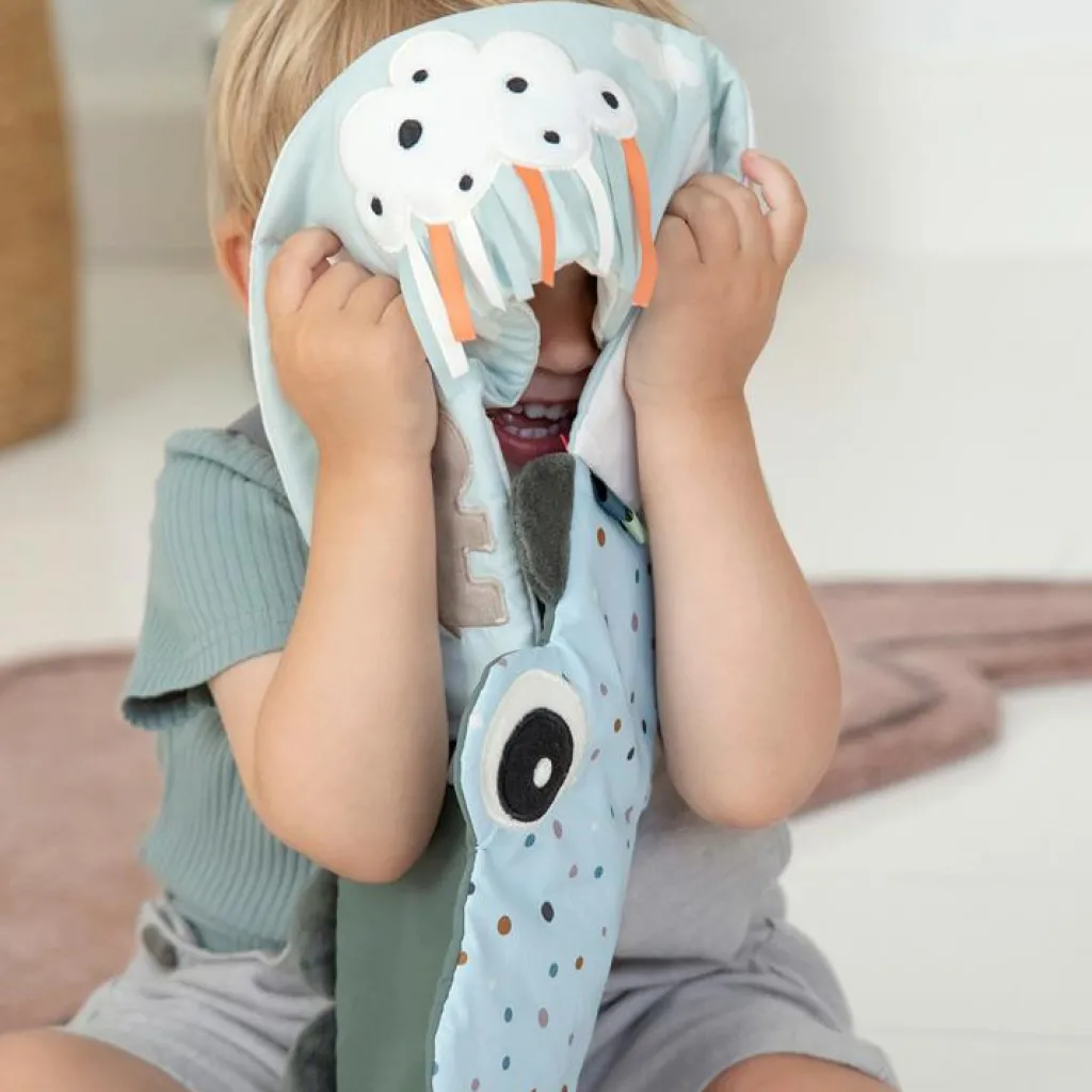 – Le crocodile vert est plein de surprises excitantes telles que des pois rigolos dans différentes couleurs et des rayures contrastantes en noir et blanc.
