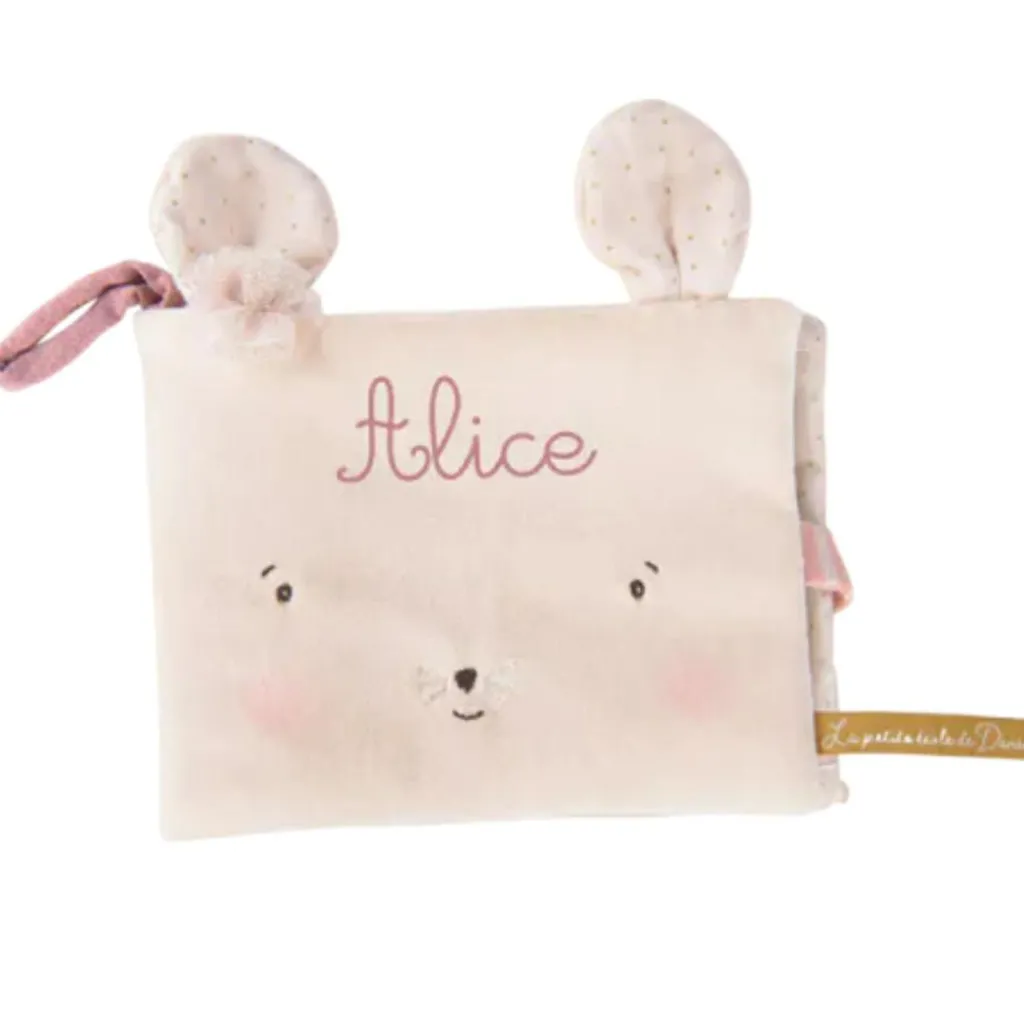 – Album photo souris en velours éponge, avec ses deux petites oreilles.